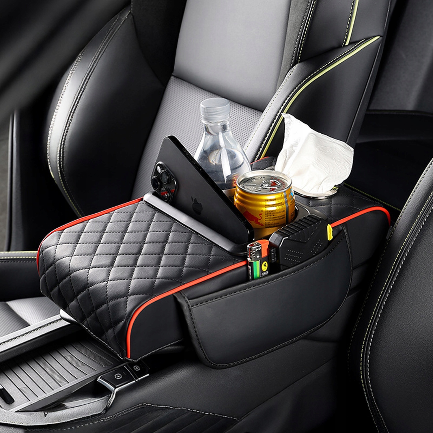 🚗 Многофункциональный дизайн : это практическое перекрытие подлокотника имеет встроенную коробку для носовых платков, подстаканник, гнездо мобильного телефона и боковые карманы, которая обеспечивает легкий доступ к салфеткам, чашкам, мобильным телефонам, картам, ключам, ручкам и другими небольшими предметами. подходит для пассажирских автомобилей, внедорожников и различных моделей седанов. Его стильный и гладкий дизайн подчеркивает красоту интерьера автомобиля.