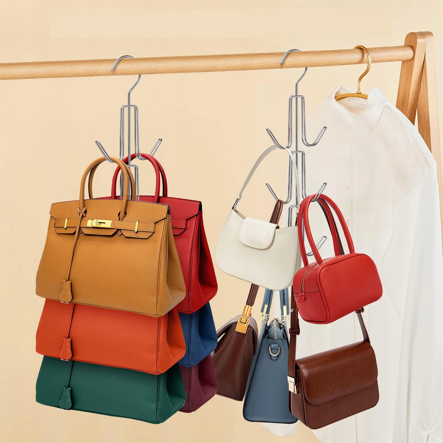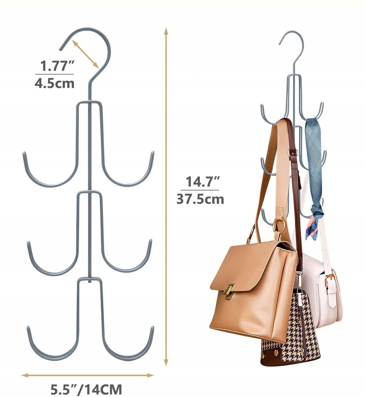Стеллаж-органайзер для сумок изготовлен из высококачественного металла и выдерживает тяжелую сумку весом до 30 фунтов, даже если с обеих сторон имеется несбалансированный вес, она не наклонится.