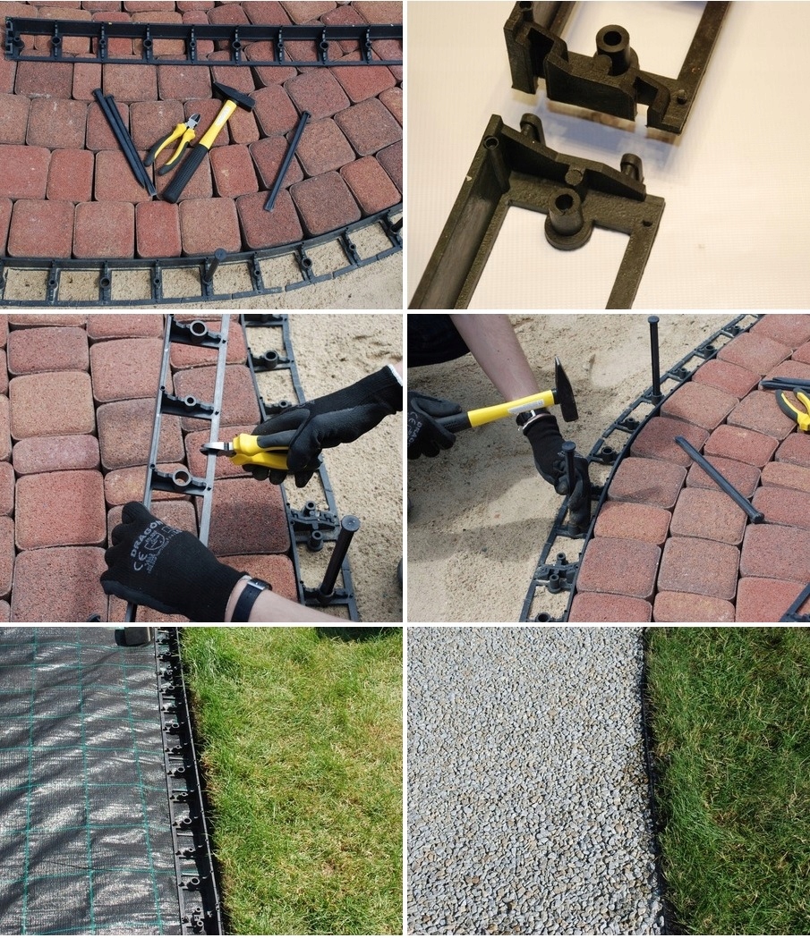 Быстрая и легкая установка пластиковых краев в сад и отсутствие необходимости выполнения раскопок, что значительно снижает стоимость и интенсивность труда построения поверхности.