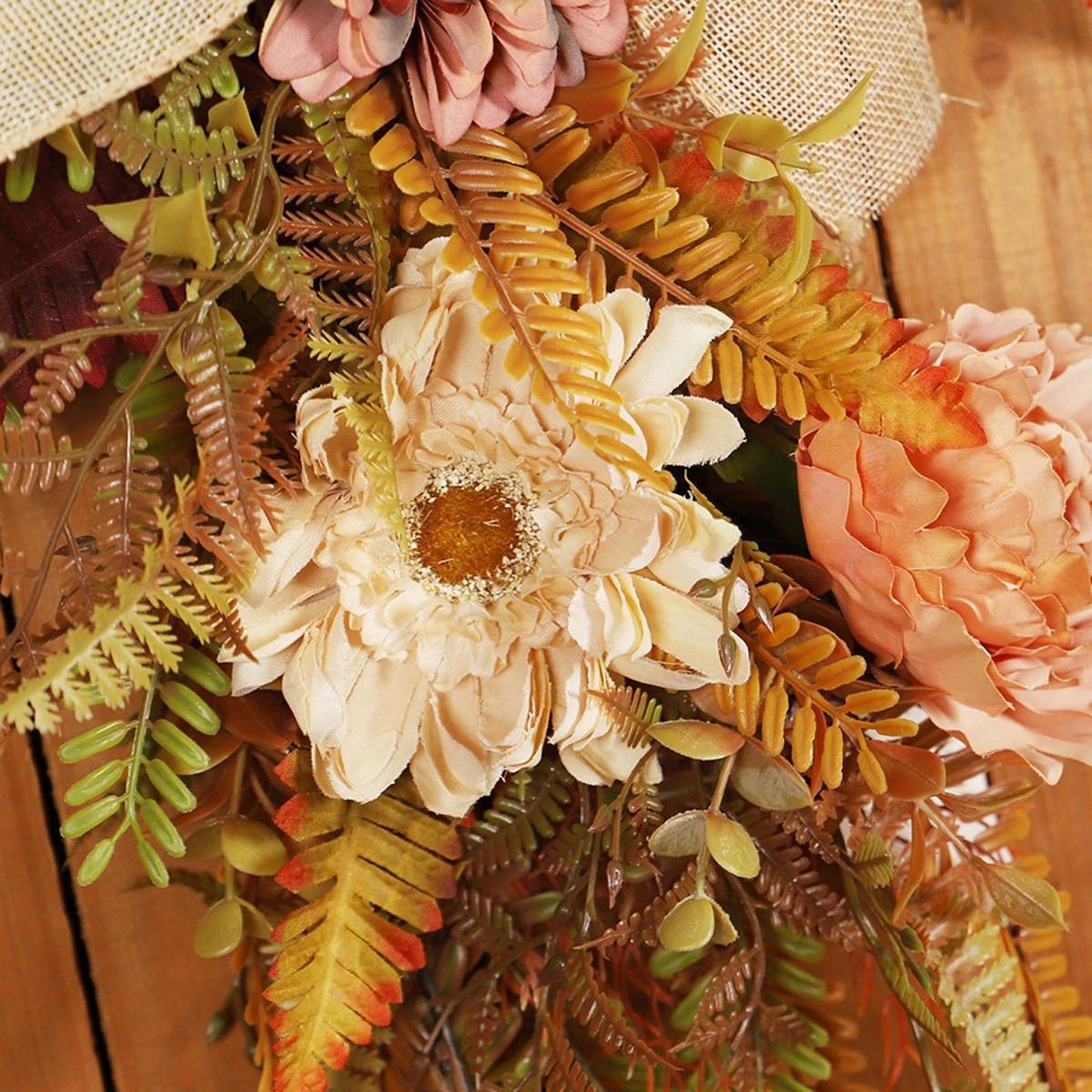 [Осеннее украшение]: ручная осенняя венок, украшенный искусственными цветами, листьями и церемонией фестиваля лука, добавляет теплую атмосферу урожая.
