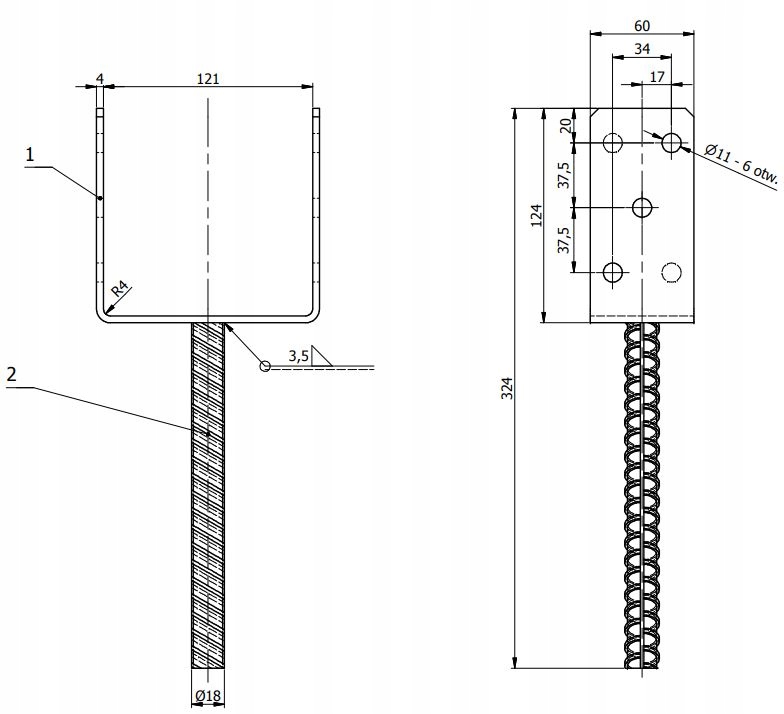 ПС120У КОЛОНННОЕ ОСНОВАНИЕ ДЛЯ СТРОИТЕЛЬСТВА, АНКЕР 120 мм