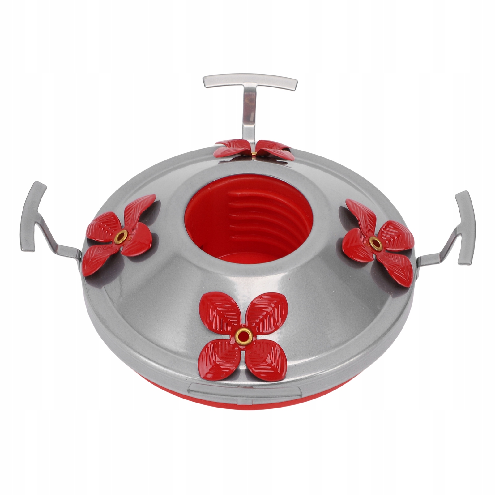 2. Практический и функциональный дизайн: умный серебряный металлический крышка оснащен удобными окунями и портами питания, что обеспечивает легкий доступ к нектару. Этот вдумчивый проект гарантирует, что ваши друзья -пернаты могут удобно кормить.