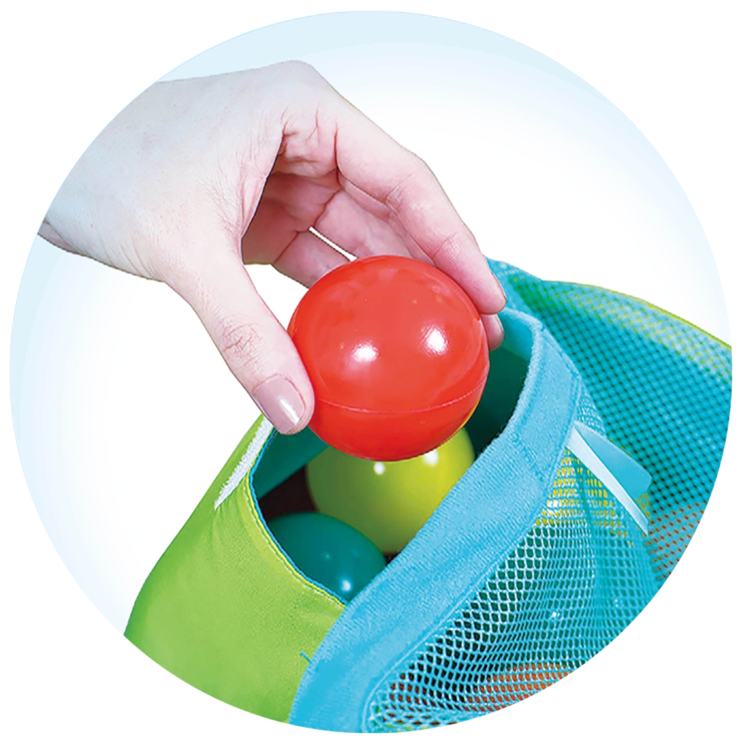 - В наборе 12 красочных шариков (4 зеленых, 4 синих, 4 оранжевых).
