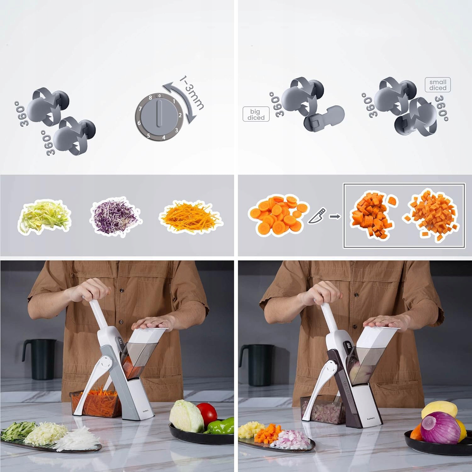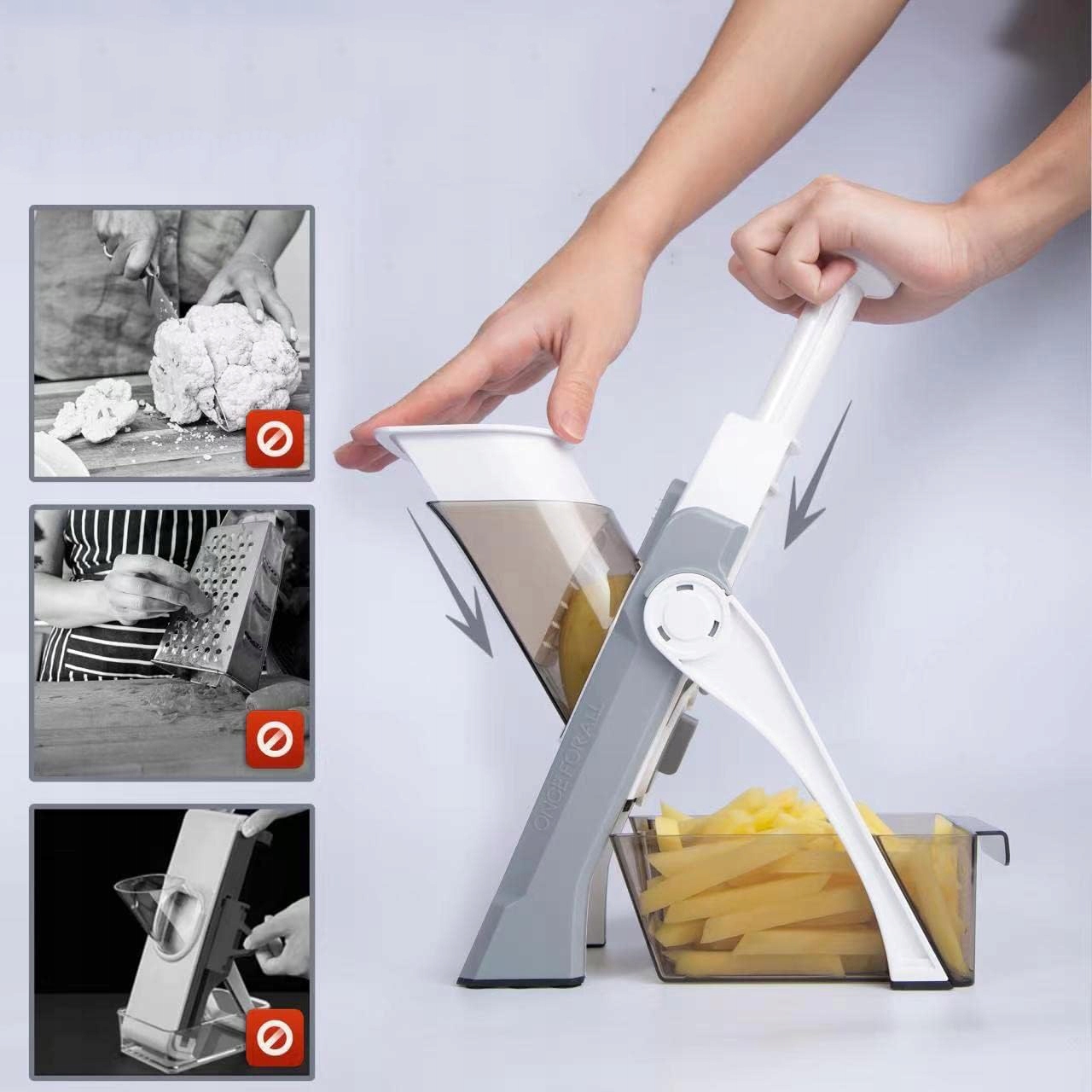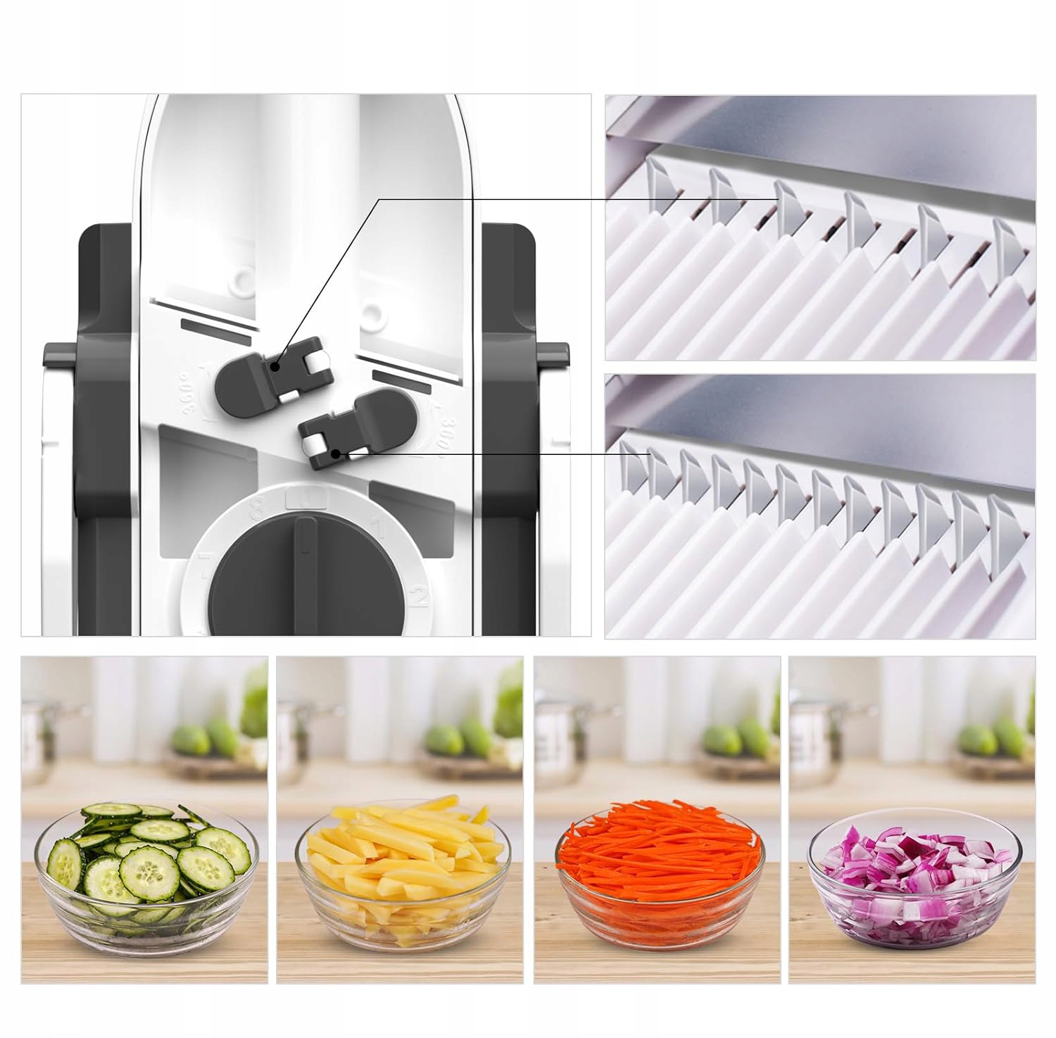 ► 【Многофункциональная и экономия времени】: просто нажмите ручку многофункционального Slicer для овощей, и вы можете быстро разрезать, нарезать, нарезать и кубик. Используя ручку сзади, вы можете отрегулировать толщину срезов в диапазоне от 0,1 до 8 мм. Подходит для картофеля, моркови, огурцов, чеснока, грибов и других (кроме мяса). - Эргономичный дизайн и не -скользящая база делают его стабильным и простым в использовании.
