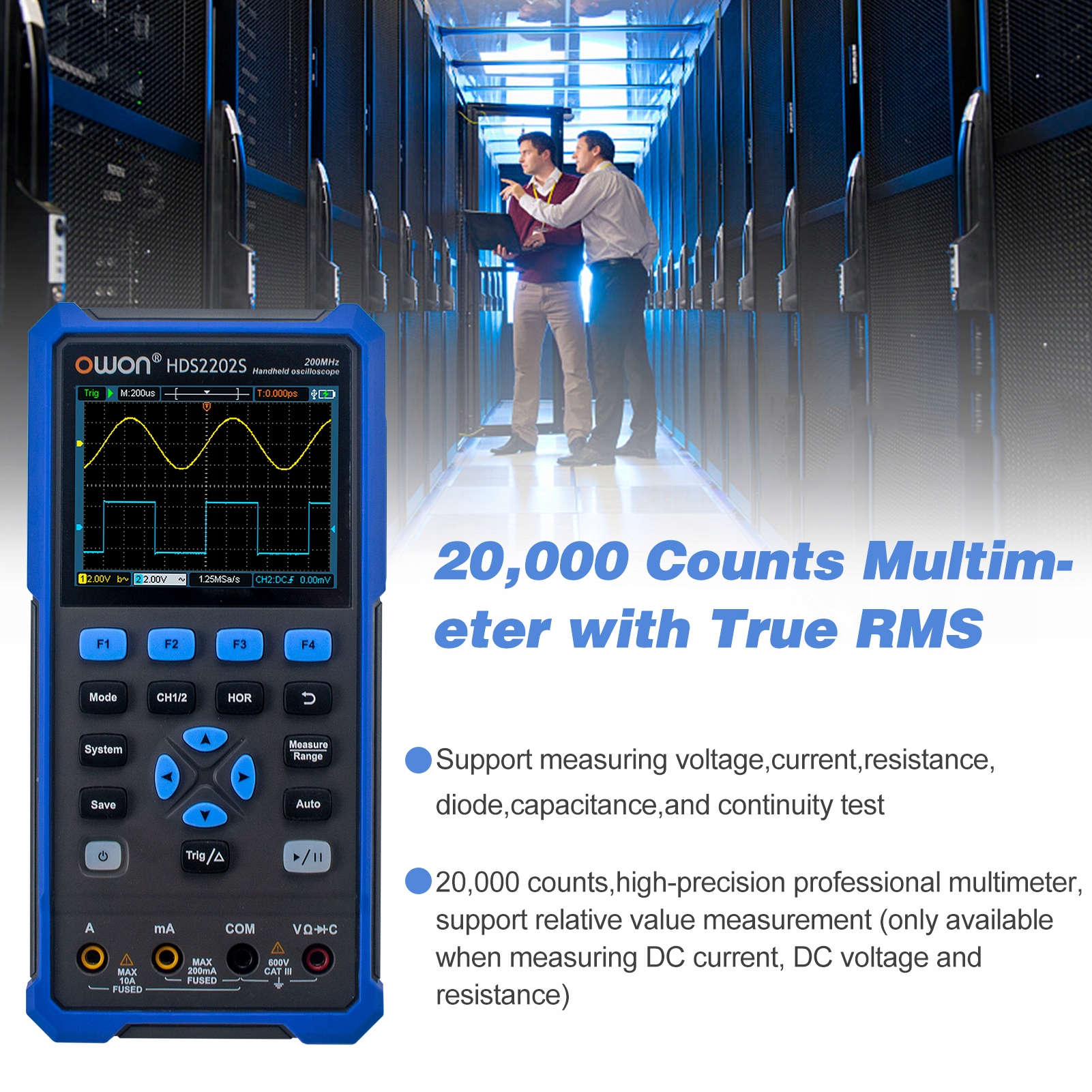 - [3 в 1 многофункциональный инструмент] вход в двойные каналы осциллографа, пропускная способность 200 МГц, скорость выборки 1GSA/s. Мультиметр - истинные среднеквадратичные среды, 20 000 подсчетов, автоматический диапазон, напряжение/ ток/ сопротивление/ диод/ пропускная способность/ тестирование непрерывности. Генератор формы волны - выходной синус, квадрат, рамп, пульс и форма волны; 1 канал, скорость отбора проб 125 мм/с, длину волны 8K.