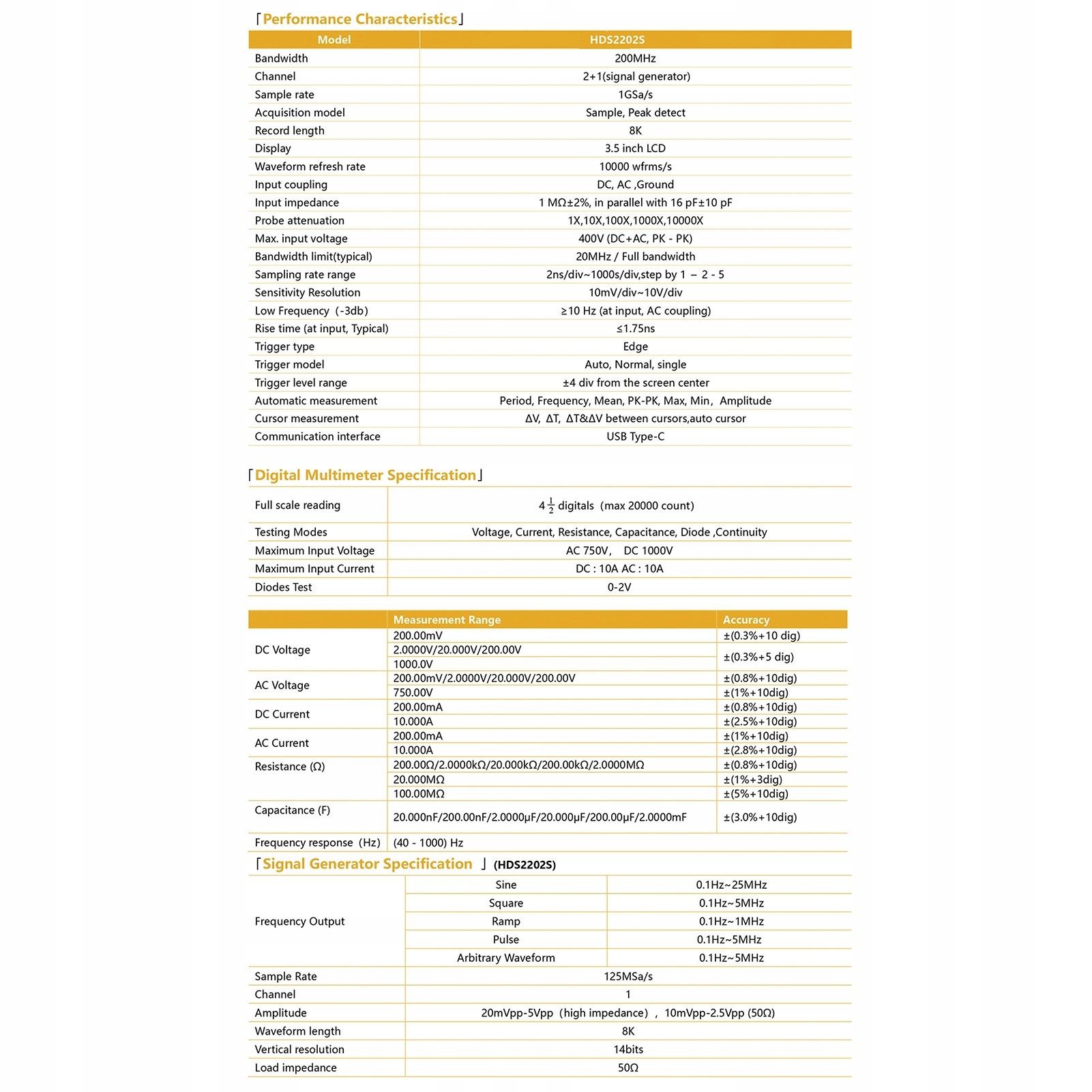 1. [3 в 1 многофункциональный инструмент] Осциллатоскоп - вход двойного канала, пропускная способность 200 МГц, скорость выборки 1GSA/ s. Мультиметр - истинные среднеквадратичные среды, 20 000 подсчетов, автоматический диапазон, напряжение/ ток/ сопротивление/ диод/ пропускная способность/ тестирование непрерывности. Генератор формы волны - выходной синус, квадрат, рамп, пульс и форма волны; 1 канал, скорость отбора проб 125 мм/с, длина формы волны 8K.