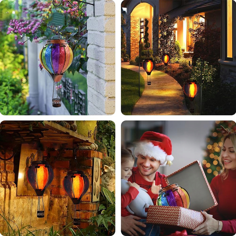 🎈 【Конструкция воздушного шара для нагретого воздуха】 Воздушный воздушный шар для нагретого воздуха, прикрепленного к солнечной энергии с градиентными цветами, изготовлен из толстого стекла и имеет реалистичное пламя. Когда солнце садится, пламя мерцает, составляя отличное украшение сада. Эффект похож на настоящий воздушный шар для нагретого воздуха.