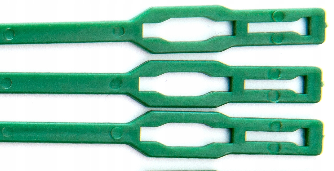 полосы могут быть повторно использованы, они может быть закреплен и расстегнут много раз. Зеленый цвет делает их вряд ли видимыми среди растений.