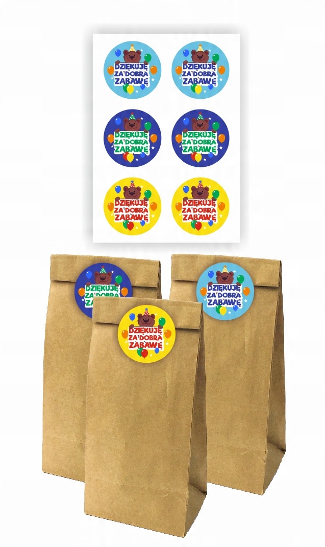 Набор маленьких бумажных пакетиков для сладостей украшенных наклейками с надписью:"Спасибо за приятно проведенное время" .