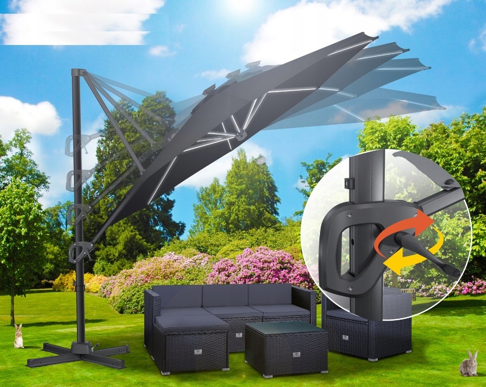 ✅ В отличие от обычных садовых зонтов, наш садовый зонт оснащен регулировкой на 360°. Наслаждайтесь. Вы получаете отличную защиту без необходимости каждый раз кропотливо регулировать створку. Встроенный ножной рычаг позволяет легко и без усилий поворачивать створку. Просто нажмите на рычаг и отрегулируйте зонт в зависимости от солнечных лучей.