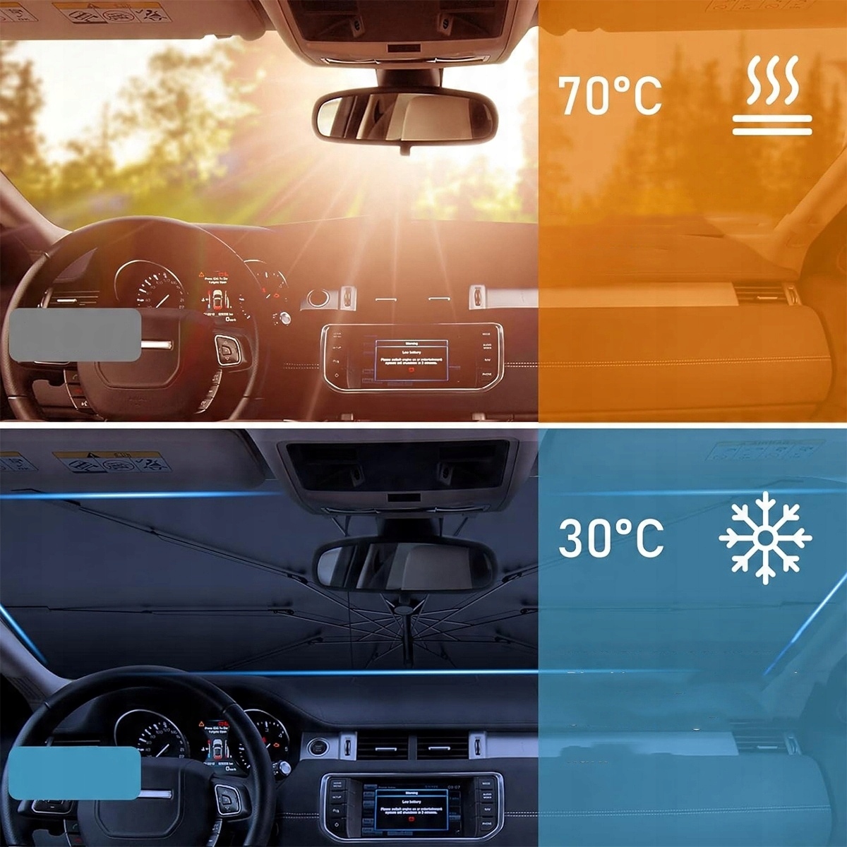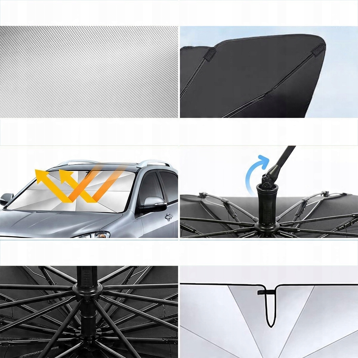 - 【Складывающая и вращающаяся ручка】 Вы устали от старой, надоедливой, длинной ручки ??? Вы случайно поцарапаете экран средней консоли вашего любимого автомобиля. Благодаря нашему инновационному дизайну складной ручки на 360 градусов, вы можете просто сложить ручку и выключить ее или в сторону, вам больше не нужно беспокоиться об этом. Эффективно защищает приборную панель от царапин, помогает покрыть автомобиль от отраженного солнечного света и обеспечивает удобный холод. Благодаря этому он универсален в широком спектре транспортных средств. Тем не менее, нельзя гарантировать, что он будет соответствовать всем моделям и не оставит никаких пробелов. Спасибо за понимание!