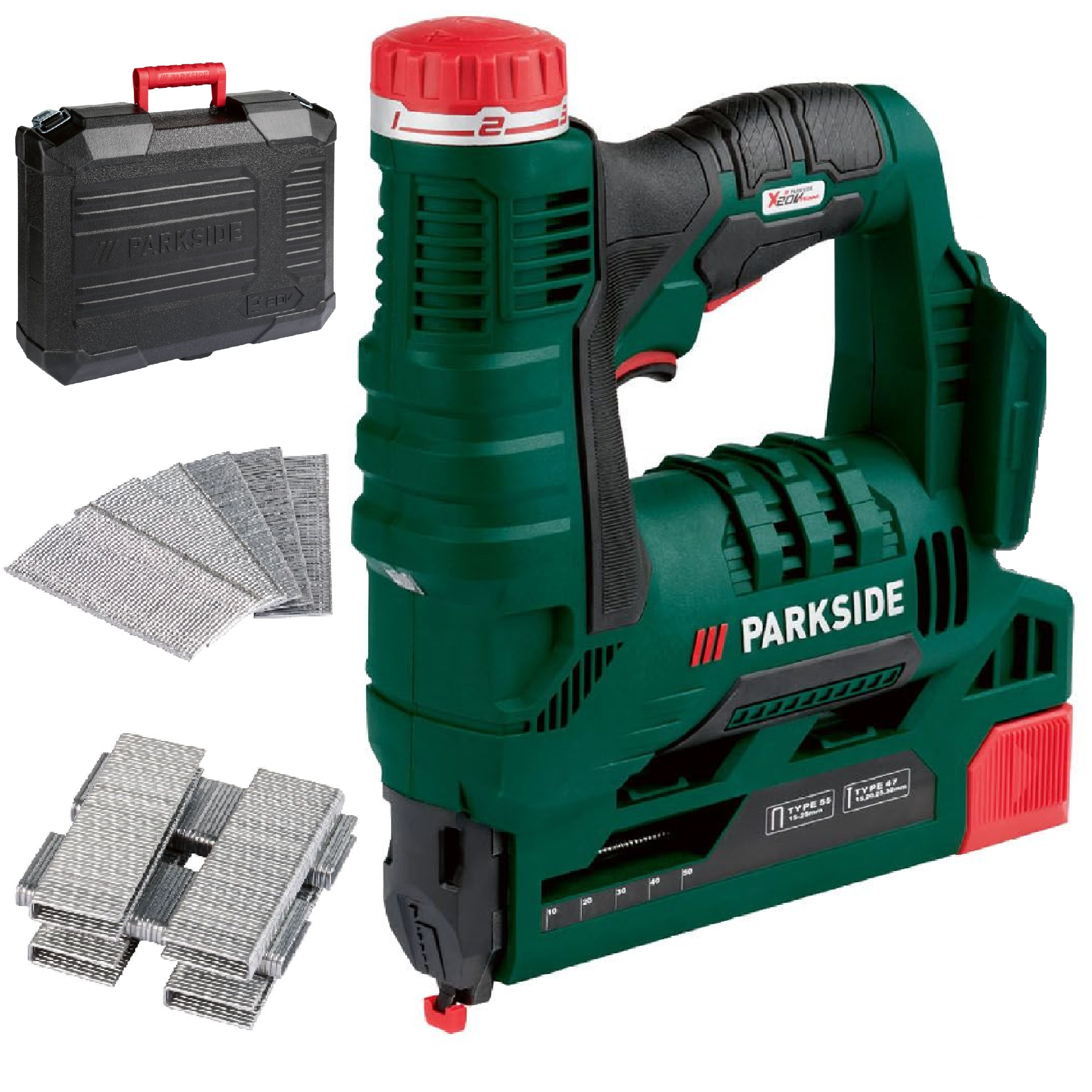 PARKSIDE АКУМУЛЯТОРНИЙ ОББИВНИЙ СТЕПЛЕР ЦВЯХОВИЙ ПРИБІР СКОБИ ЦВЯХИ 20В