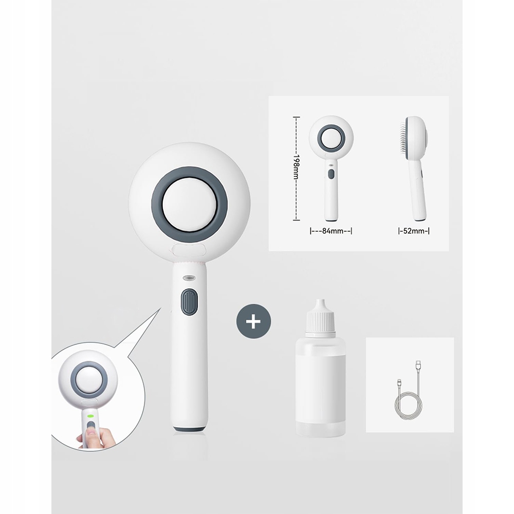 оснащен 30 -мл резервуаром для воды, он может непрерывно опрыскивать в течение 35 минут, сохраняя слой вашего животного увлажненного и блестящего.
