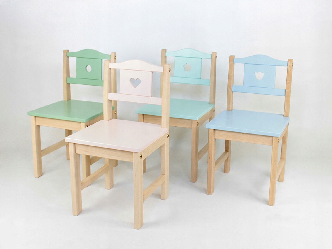 Четыре рисунка на спинке стула на выбор: круг, сердце, цветок или плюшевый мишка.