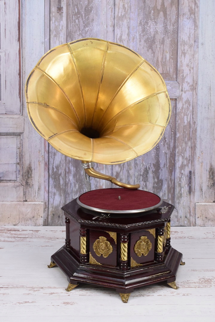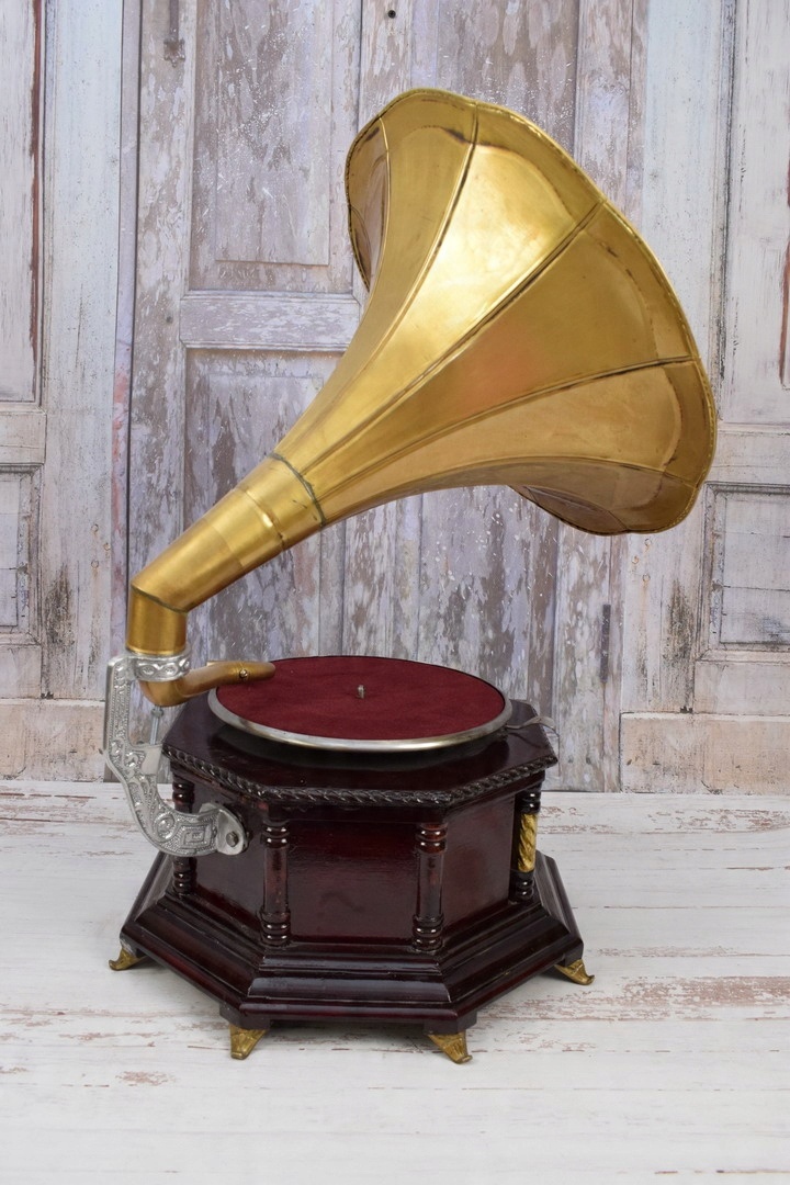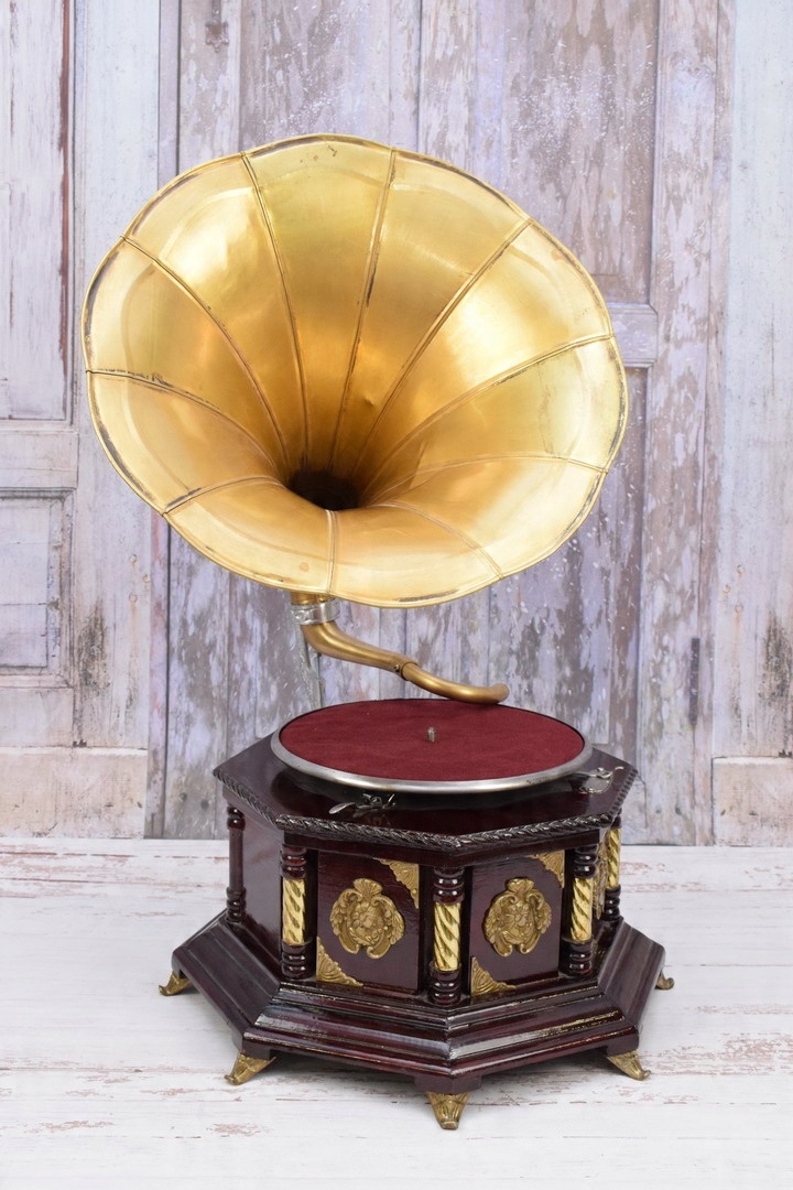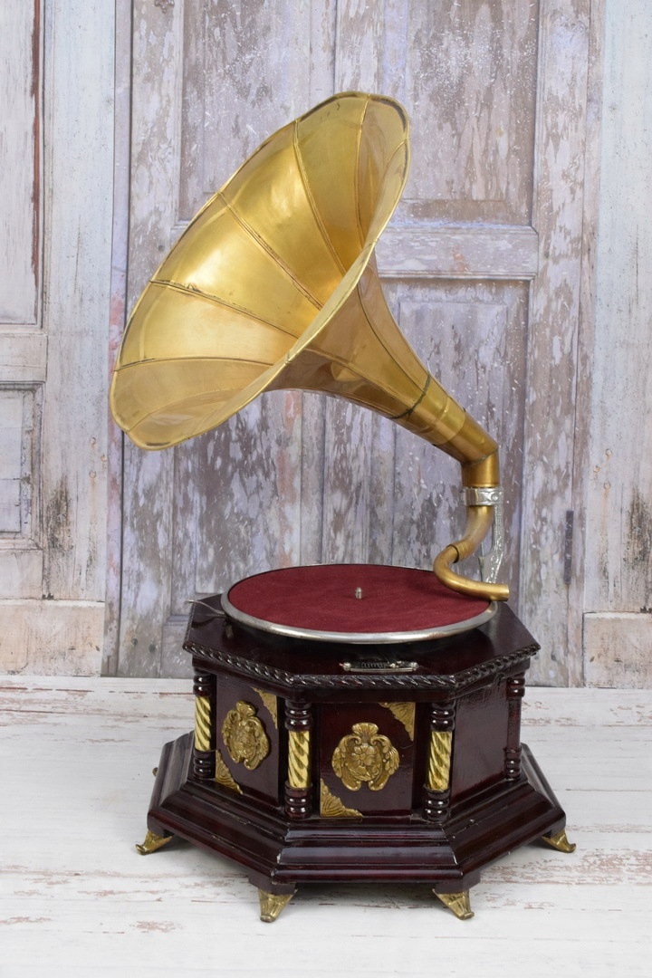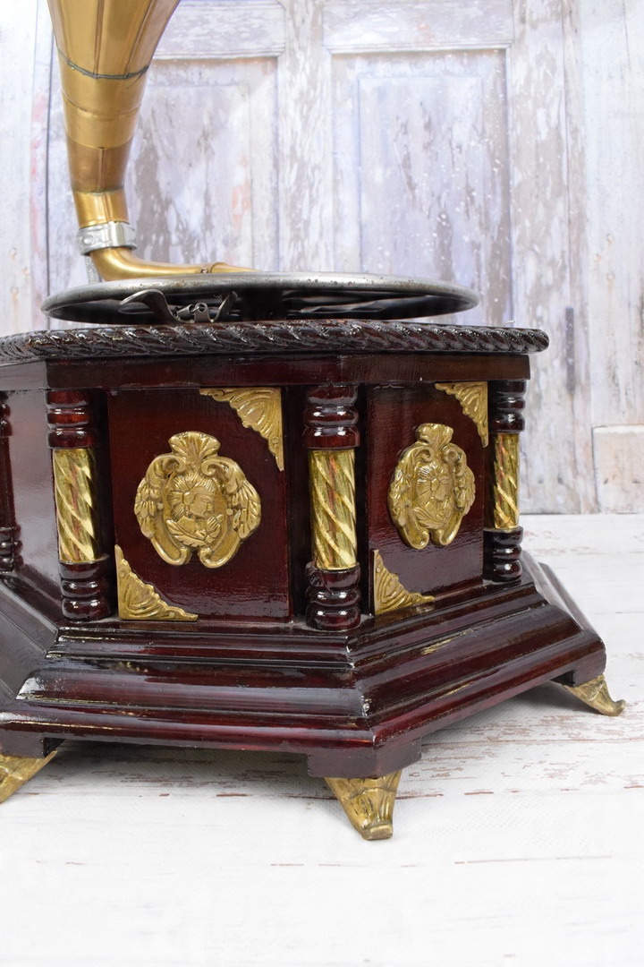 ПАТЕФОН-ПАТЕФОН-ОКОВАННЫЙ ЛАТУНЬЮ-ИСПРАВЕН !!