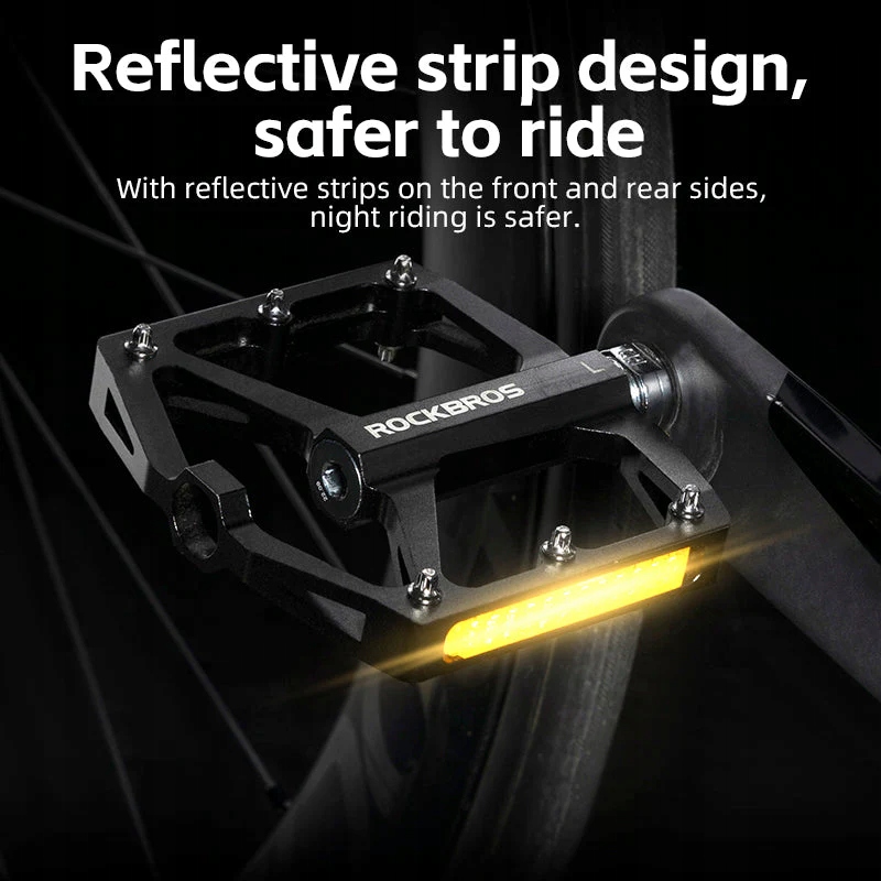 Для лучшей адгезии педали оснащены 6 не -скользящими штифтами с каждой стороны, которые стабилизируют ногу и предотвращают ее проскальзывать даже в дождливую погоду. Кроме того, отражающие полосы увеличивают видимость велосипедиста, что повышает безопасность вождения, особенно в условиях плохого освещения