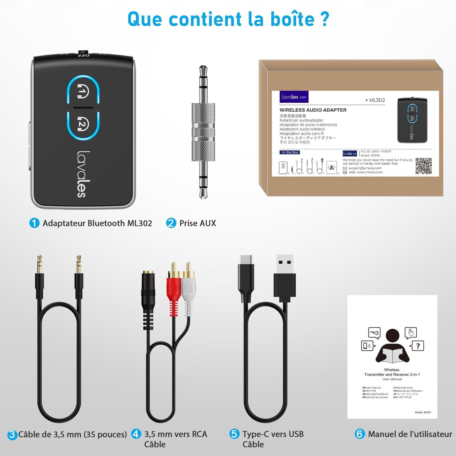 ✅ 【Высококачественное соединение Bluetooth】 Адаптер Bluetooth Lavales использует расширенную технологию Bluetooth 5.3 для обеспечения стабильной и эффективной передачи, при этом минимизируя потребление энергии. Благодаря технологии декодирования APTX-HD режим приема может восстановить качество стерео звука с высокой лояльностью.