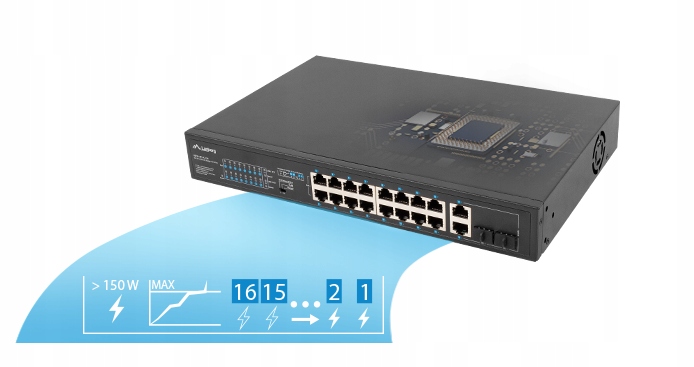 Switch Lanberg RSFE-16P-2C-150 16XPOE, 2XUPLINK, SFP