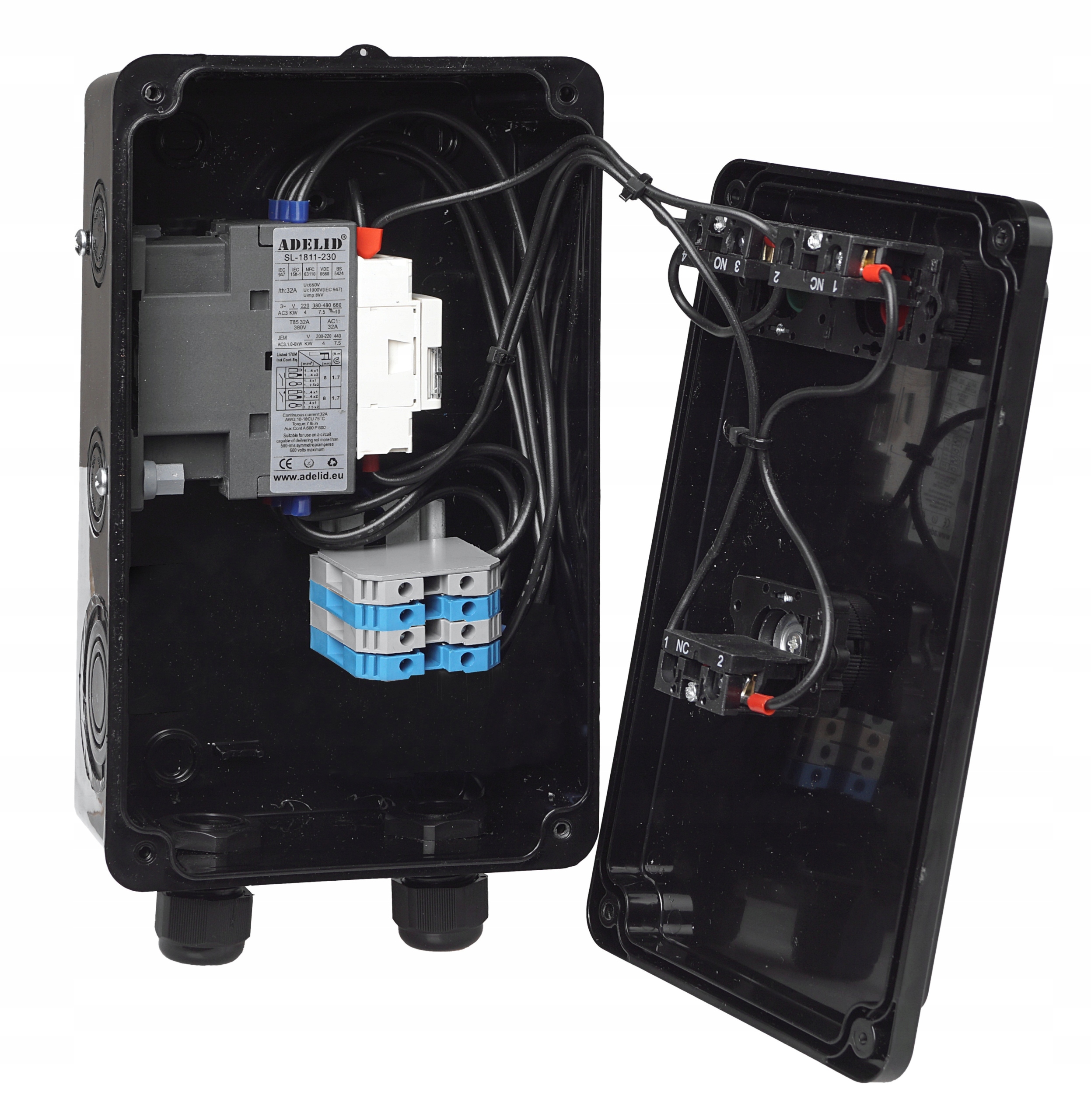 Полный однофазный старт. Переключатель, переключатель для однофузового двигателя, с двумя япочками, в черном, Adelid. Оборудован с желтой предупреждающей пластиной. h1>