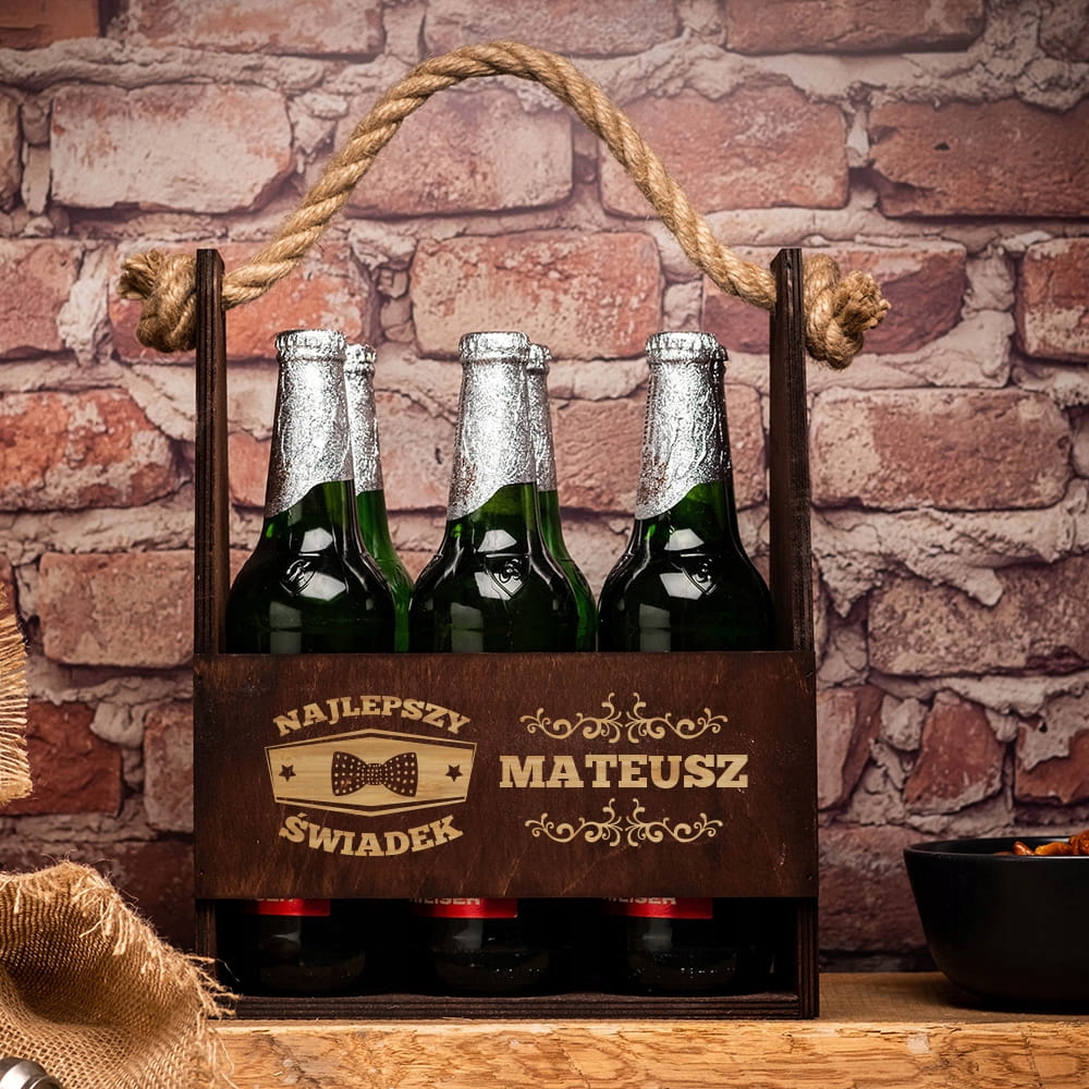 ✓ >На нем выгравировано для свидетеля, его можно использовать как коробку для пива, тогда он позволит раздавать бутылки или банки с золотым напитком таким образом, чтобы они будут не только подарком, но и их упаковка.
