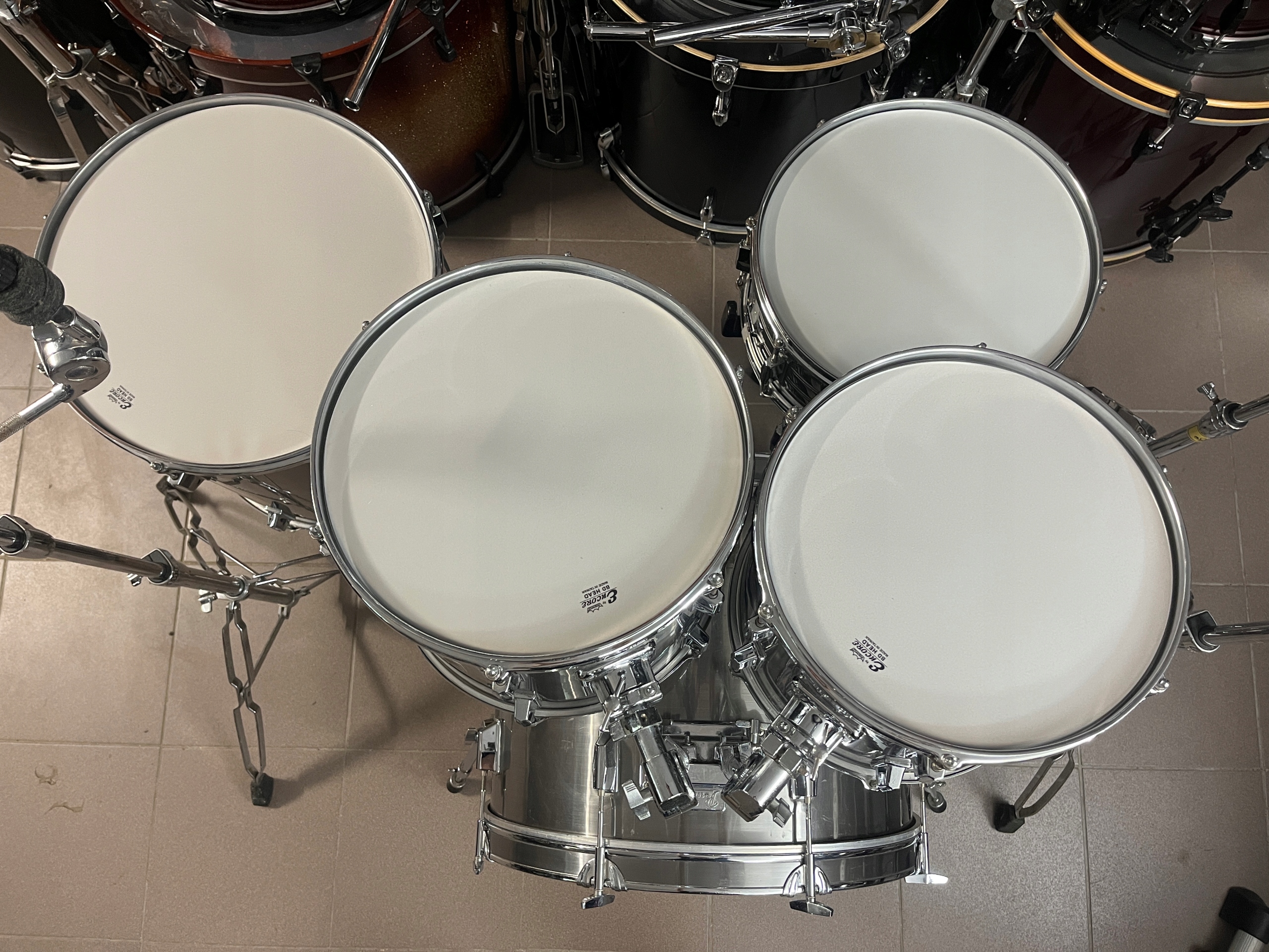 Размеры барабанов составляют 22 ", 12", 13 ", 16", 14 "стальная ловушка. Набор находится в хорошем состоянии, имеет следы нормального использования. В штаб -квартире несколько царапин и обивки. Оба барабана, так и оборудования не имеют никаких скрытых дефектов. Набор включен:
