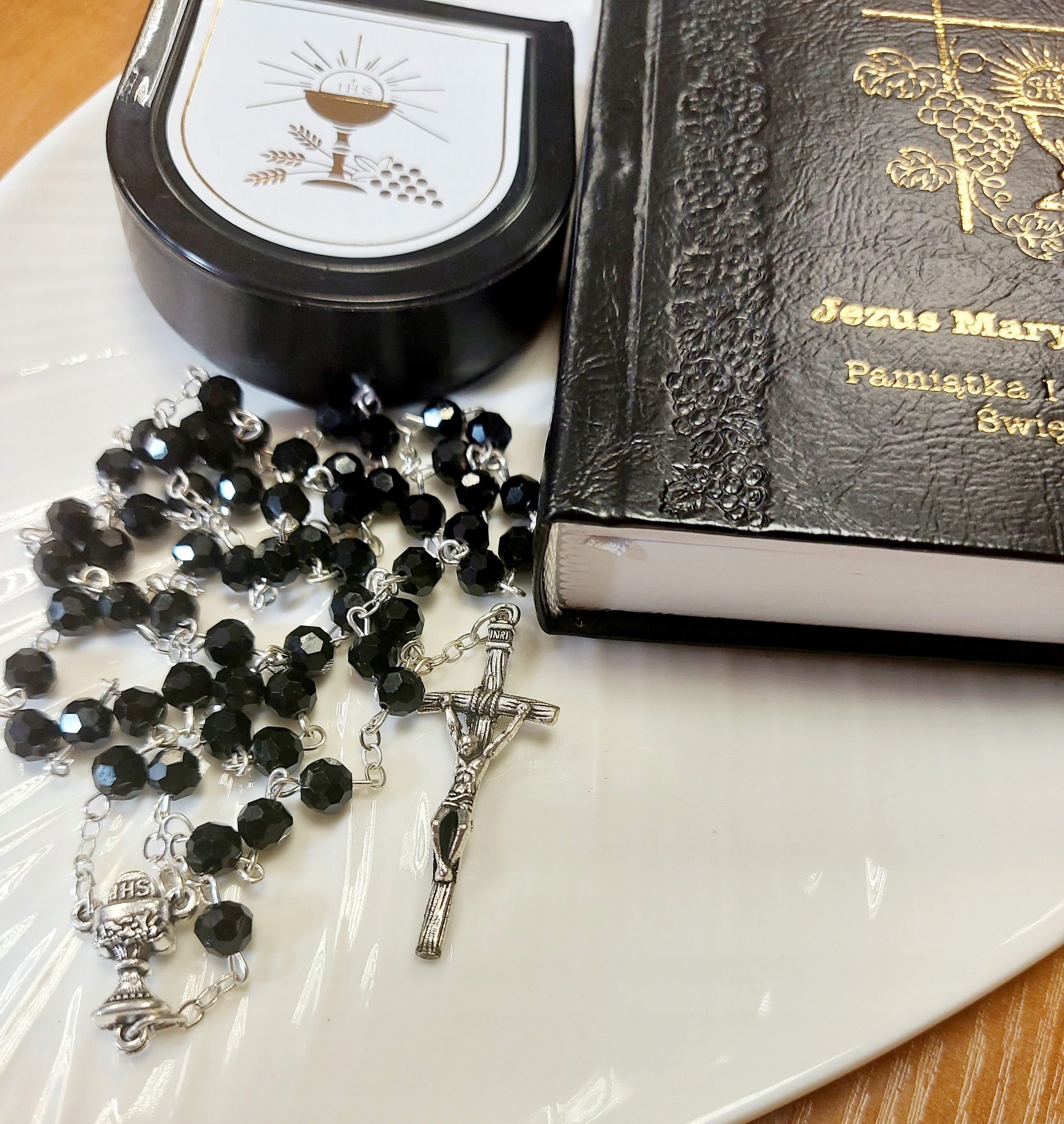 Первое Причастие – очень важный праздник для всех верующих, а не только детей, которые будут участвовать в полном Таинстве Евхаристии в первый раз. Неотъемлемым элементом этого прекрасного момента являются четки. Предлагаемое нами изделие станет отличным сувениром на долгие годы, напоминая вам об этом важном моменте в вашей жизни. Медальон-коннектор олицетворяет хозяина. Четки Первого причастия, представленные на нашем сайте, станут прекрасным подарком, увенчающим этот торжественный момент в жизни молодого католика.