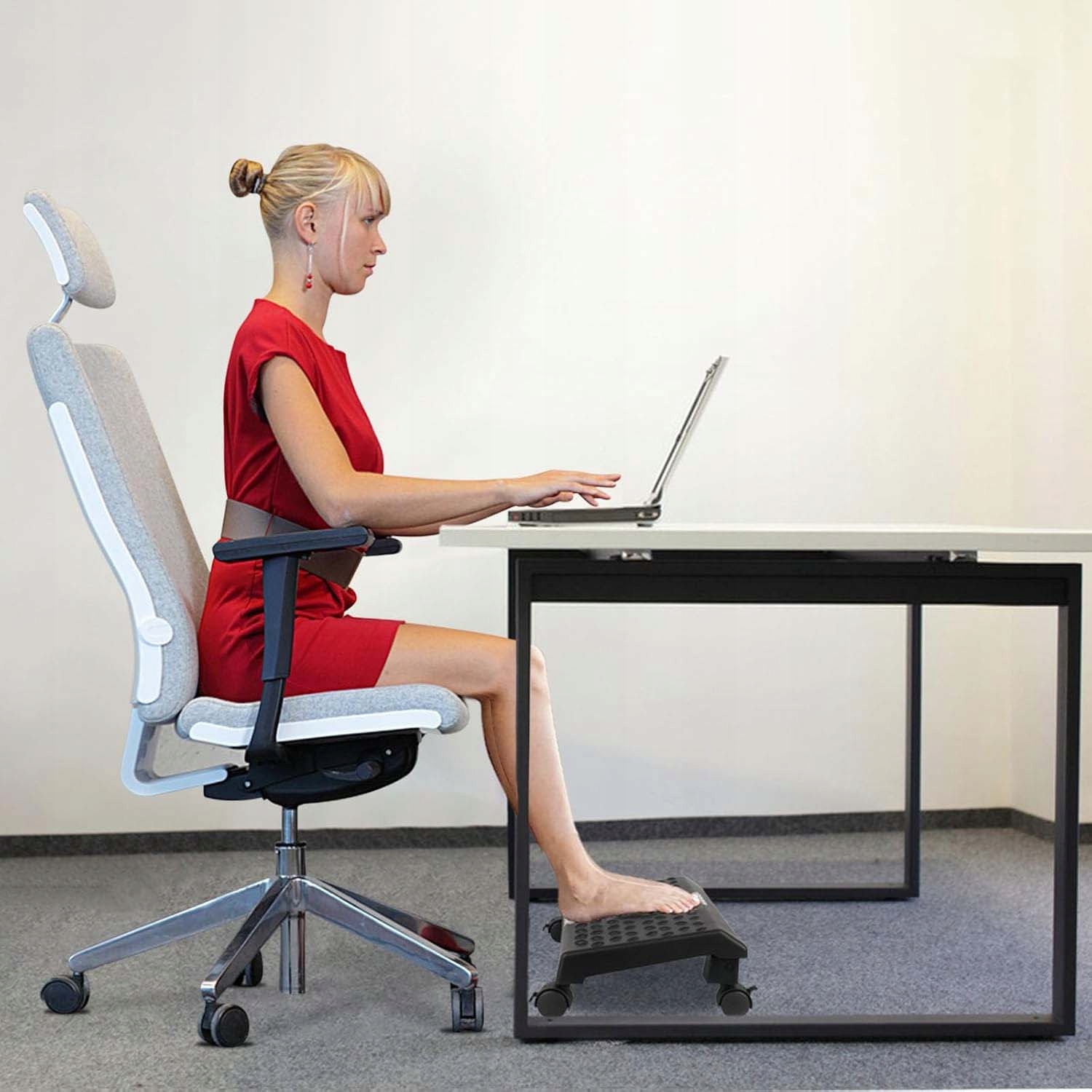 КОЛЕСА 360°: Подставка для ног под столом имеет4 колеса. Эргономичный дизайн обеспечивает оптимальную высоту и наклон. Подставку для ног можно легко перемещать с помощью колес.