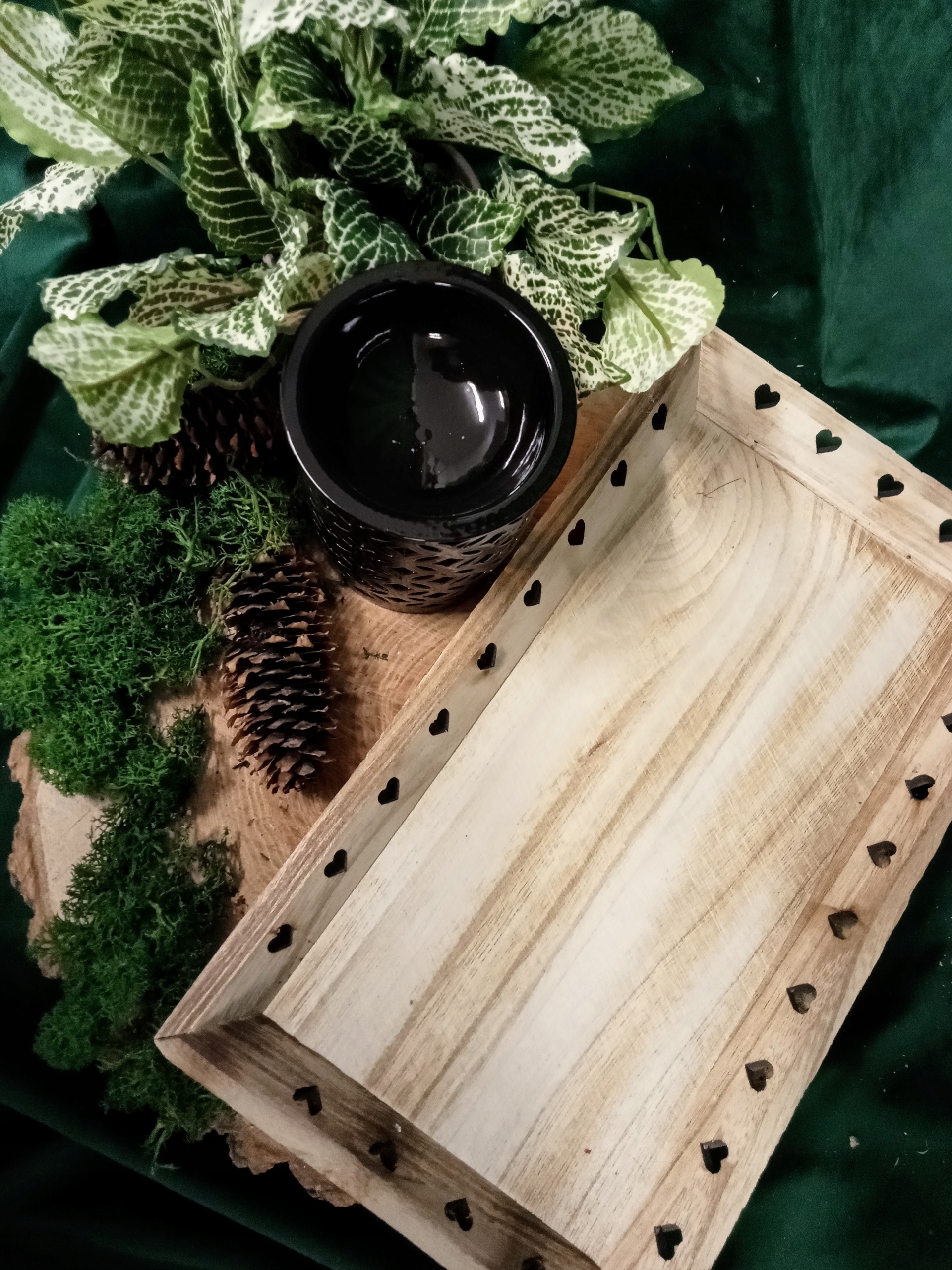 ДЕРЕВЯННАЯ ПОДСТАВКА, ПОДНОС С СЕРДЦАМИ