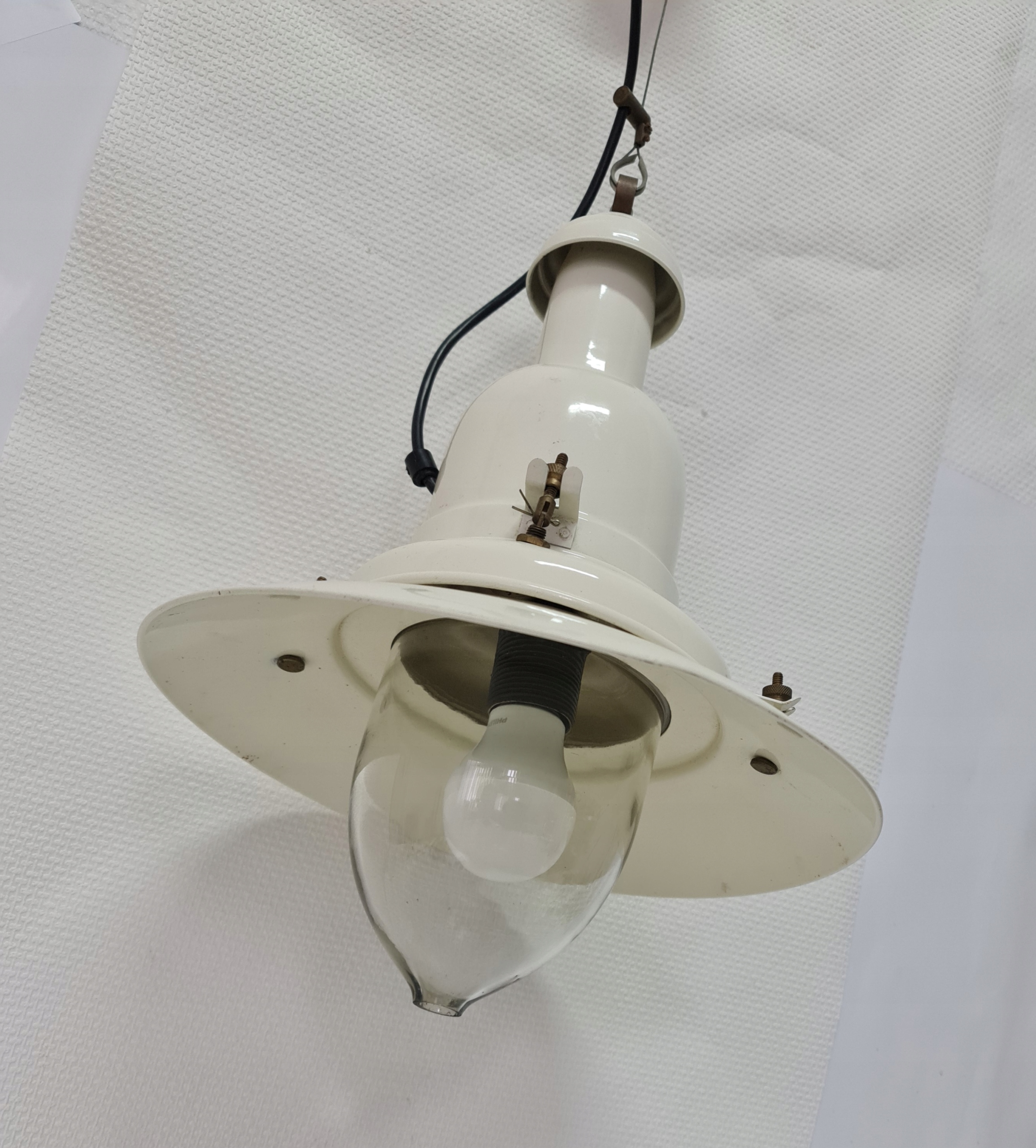 Чрезвычайно очаровательная эмалевая лампа в морском стиле. Это будет отлично смотреться на кухне или над столом в столовой.