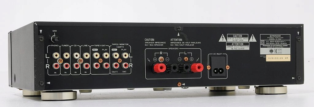 a -103 - одна из основных моделей пионерского усилителя, но, как и любой элемент этих лет (начало 90 -х годов), как и является пионером, он обладает очень теплыми характеристиками и, безусловно, удовлетворит многих пользователей. Простота использования, скромные размеры, а также отличный звук в этом устройстве. Уверяю вас, что этот усилитель играет в банке лучше, чем новые усилители, доступные в магазинах. Я приглашаю все невероятно, чтобы слушать. Если кто -то не верит, вы можете противостоять устройствам.