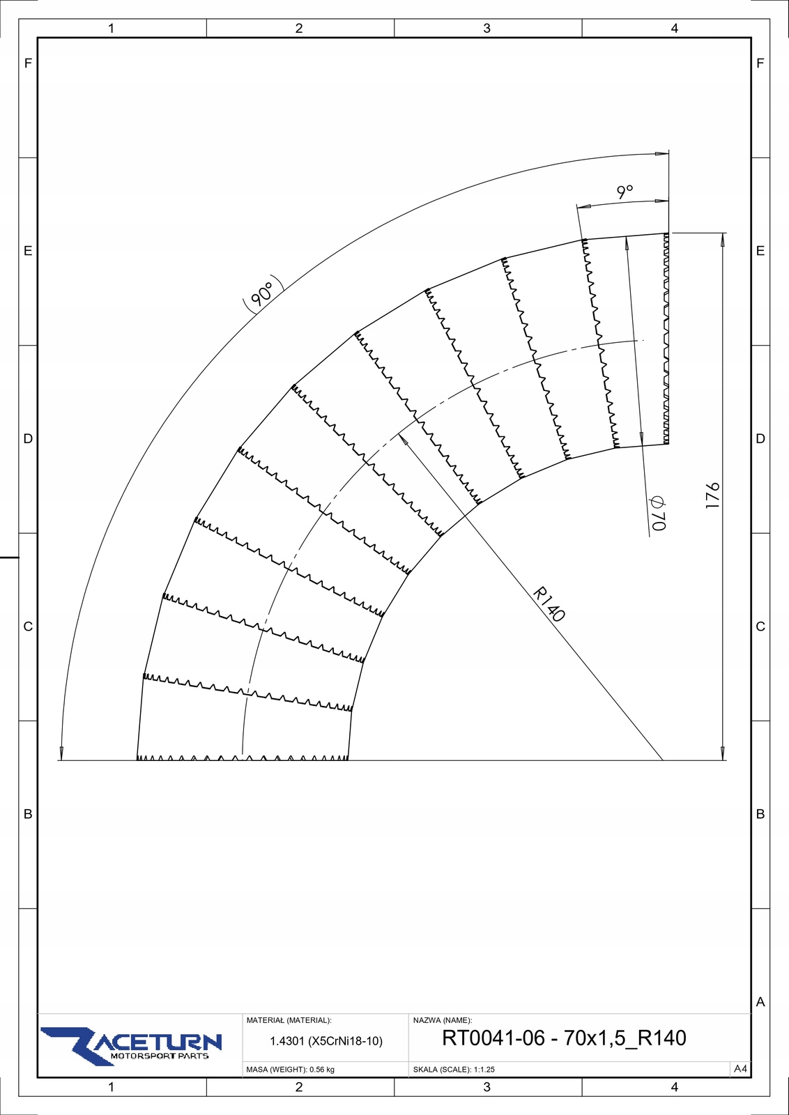 Угол изгиба - 2D диаметр - 70 мм / 2,75 "толщина стенки - 1,5 мм материал - нержавеющая сталь