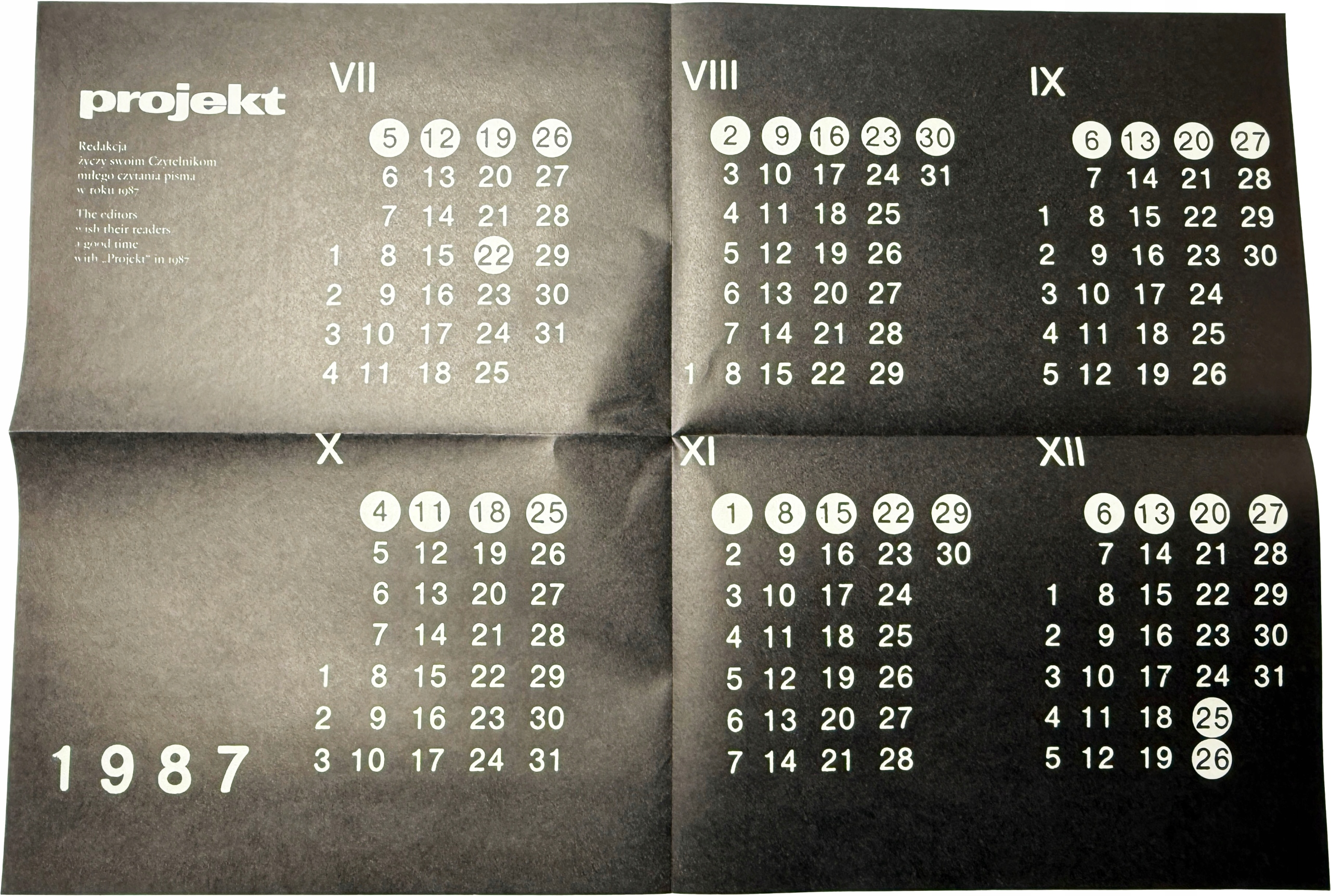 Покупая «Плакат - календарь Projekt 1987», вы можете быть уверены, что данный товар из каталога «[rubrica_name]» вы получите в срок 5-7 дней после оплаты. Товар будет доставлен из Европы, проверен на целостность, иметь европейское качество.