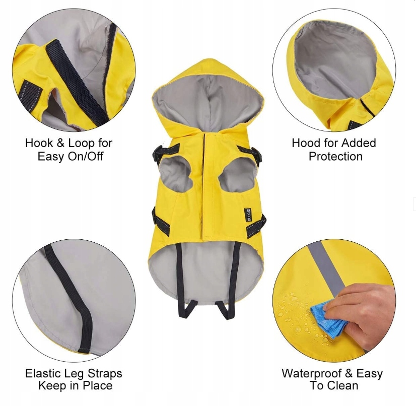 Легко надевать/снять: плащ для собаки с брекетами легко надеть и снять. Вам не нужен дополнительный воротник или брекеты. Благодаря скалоловому ползунду, эта дождевая куртка подходит для маленьких и средних собак, щенков и кошек, таких как чихуахуа, французский бульдог, Йоркширский терьера, Джек Рассел и т. Д.