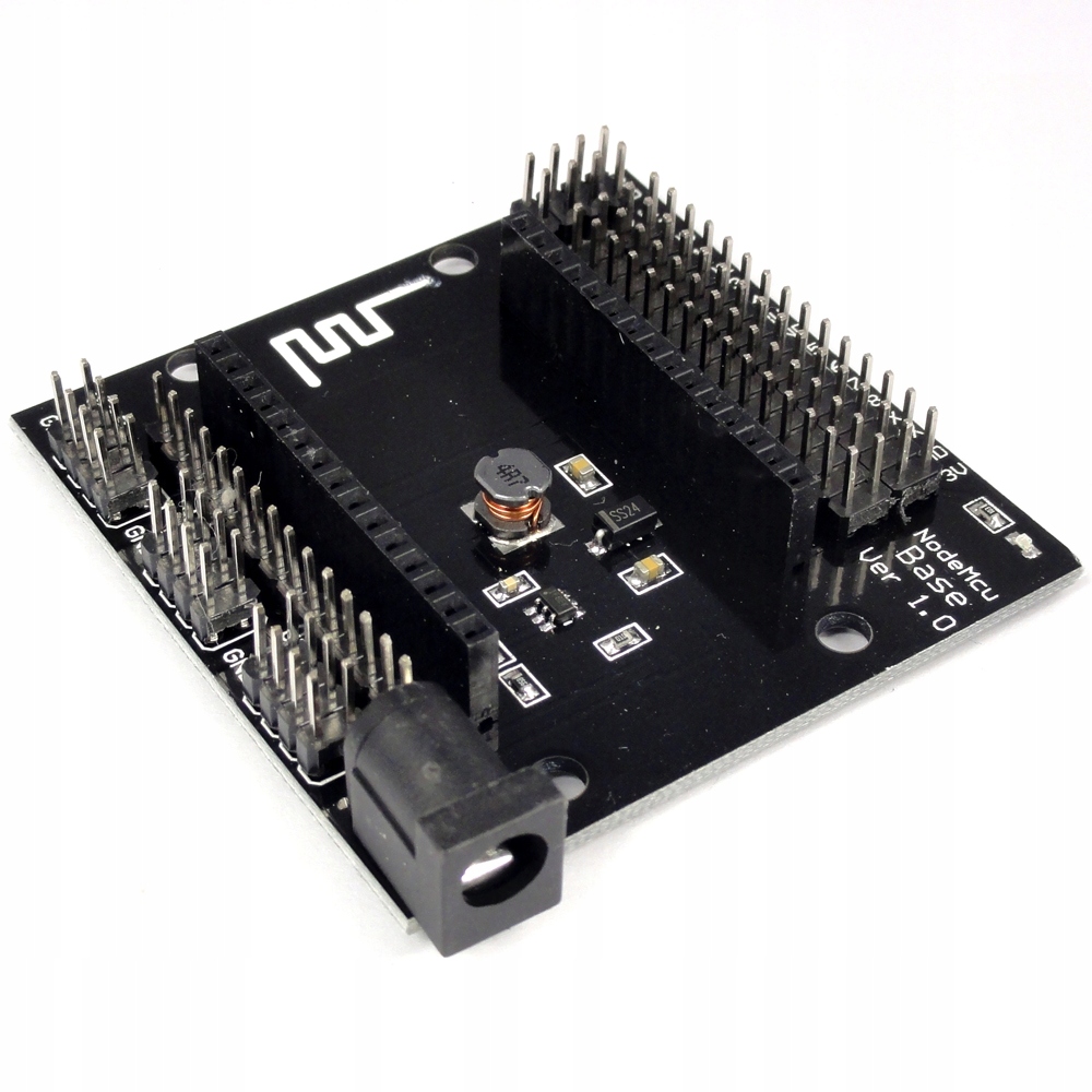 Шилд для ESP8266 NodeMCU V3. Плата имеет встроенный стабилизатор 5 В/1 А, разъем питания постоянного тока 5,5/2,1 мм и светодиод, указывающий наличие питания системы. По бокам расположены контакты для всех разъемов микроконтроллера, а на противоположной стороне — контакты напряжения.