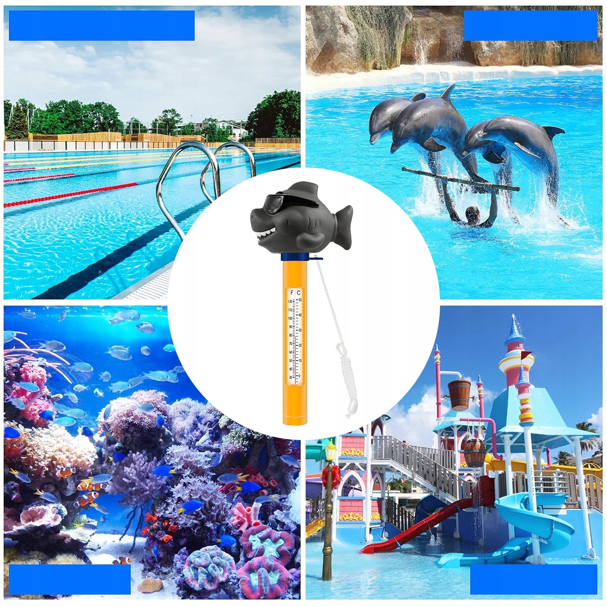 Термометр плавающего воды, термометр бассейна, термометр с мультфильмом, термометр бассейна, устойчивый к синяке с кабелем, подходящим для внутреннего и внешнего джакузи, бассейны (акула) h1>