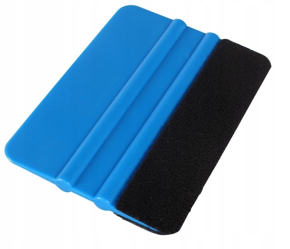 3. Снимаем защитные слои с фольги, а затем опрыскиваем раствором абажур и фольгу с клейкой стороны (жидкость можно приобрести на других аукционах, ее следует разбавить водой). Вы также можете использовать другую жидкость для аппликаций или добавить несколько капель жидкости для детской ванночки Johnson's на 1 литр воды. Не используйте моющие средства, такие как жидкость для мытья посуды или средство для мытья окон, поскольку они могут оставить полосы под пленкой. Наклеивайте фольгу аккуратно, используя фетровый ракель, который поможет исправить неровности, пузырьки воздуха и остатки воды, а также используйте тепловую пушку, которая улучшит пластичность фольги и свяжет клей. Не обрезайте фольгу заподлицо с краями автомобиля – это поможет избежать таких негативных последствий, как усадка фольги и механические повреждения, например, при мойке автомобиля. Не растягивайте фольгу слишком сильно. Фольгу можно растягивать, что облегчает монтаж, однако ее гибкость не безгранична. Чрезмерное растяжение фольги может привести к ее оттягиванию назад или образованию задиров по краям.