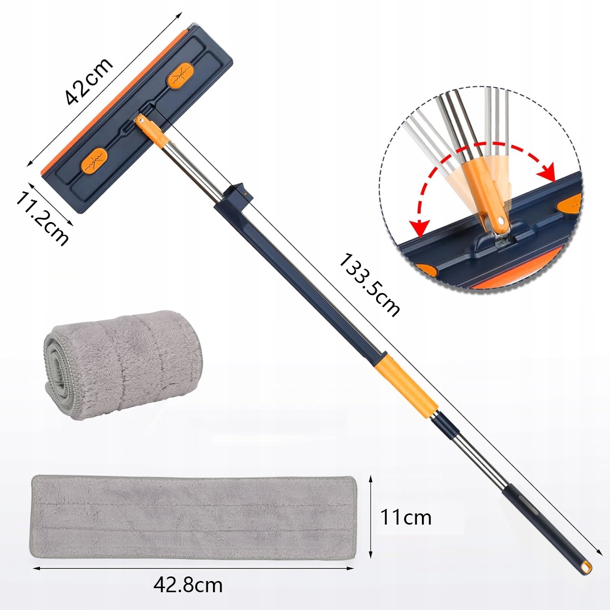 【Вращающаяся на 360° насадка швабры】Насадка швабры полностью гибкая и может вращаться на 360°. Это позволяет швабре легко добраться до труднодоступных мест, например, под кроватями или диванами, предотвращая скопление пыли. В верхней части ручки имеется практичный крючок, с помощью которого вы можете повесить швабру вертикально на стену, когда она не используется.