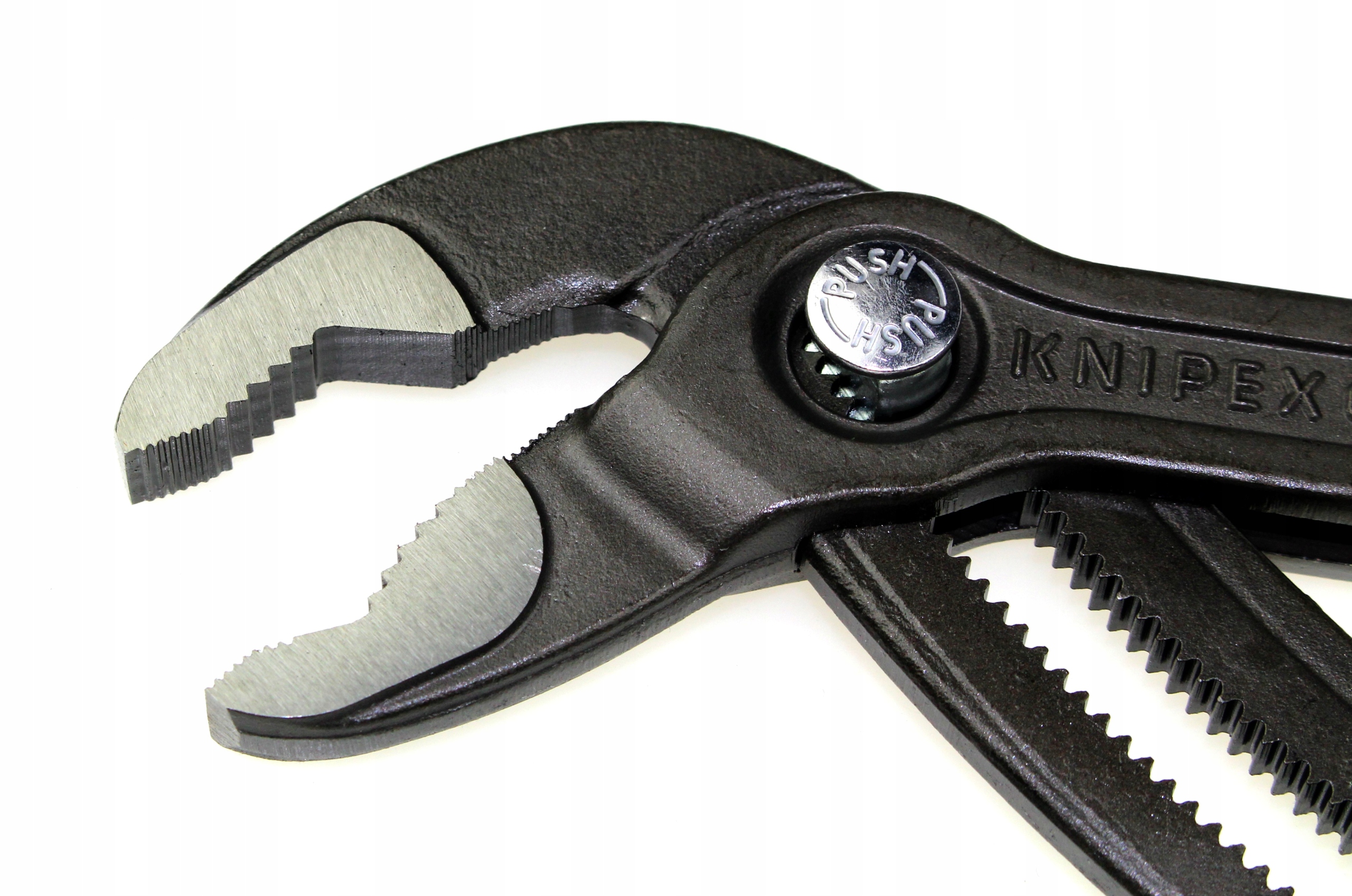 KNIPEX Cobra® — трубогубцы нового поколения. Больше не нужно тратить время на регулировку открытия челюсти до нужного размера. Просто поместите верхнюю челюсть на предмет, который вы держите, нажмите кнопку и потяните нижнюю челюсть. Это так просто!