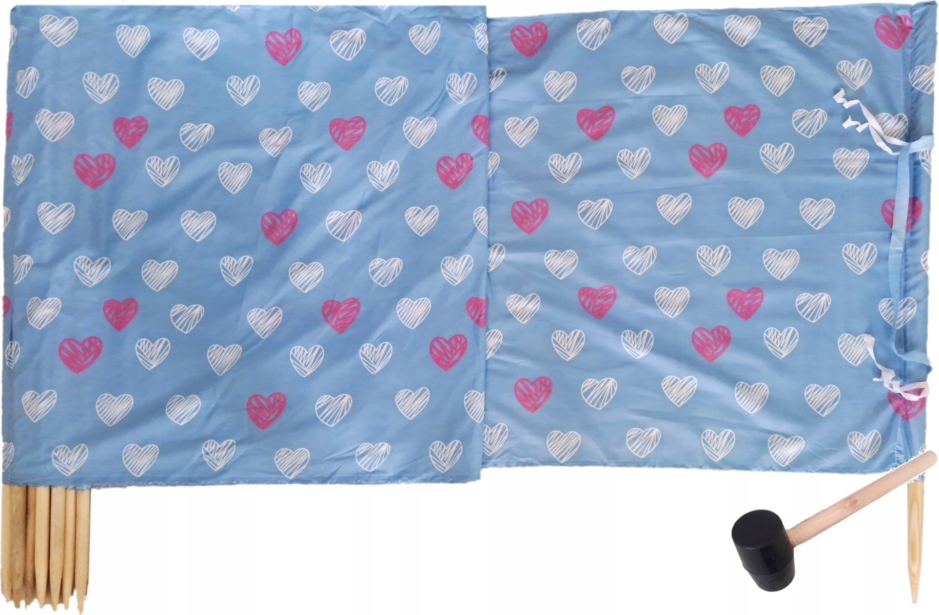пляжный экран 15 метров с белыми и розовыми сердцами на синем фоне