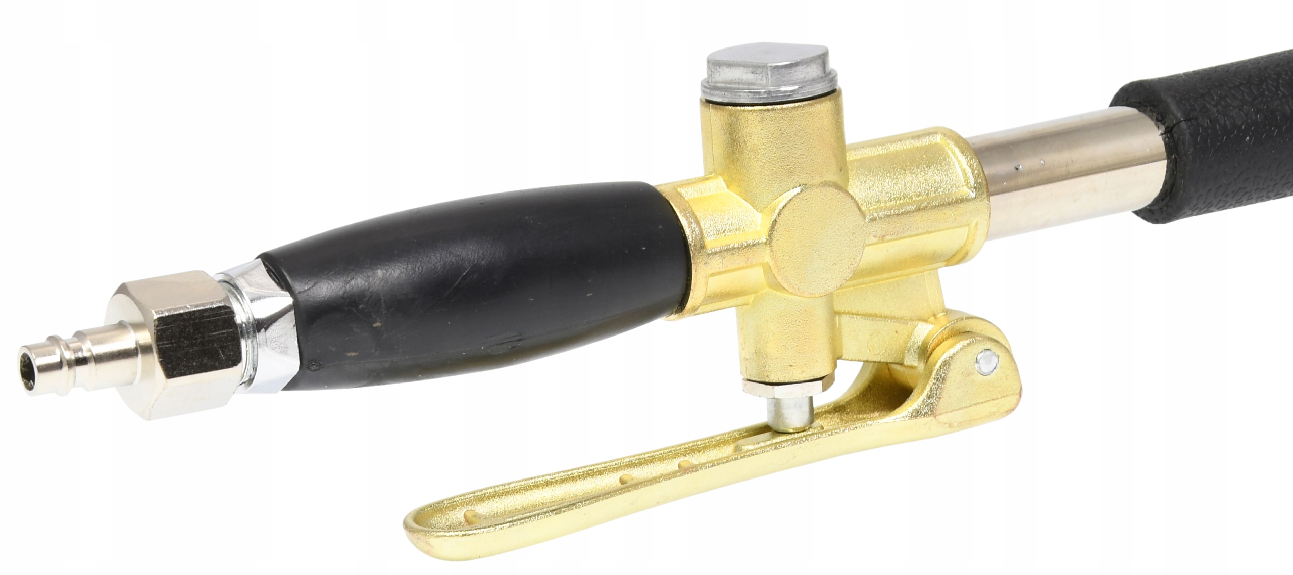 Прибор изготовлен из алюминия и нержавеющей стали, имеет прорезиненные ручки и длинную спусковую кнопку для облегчения работы.