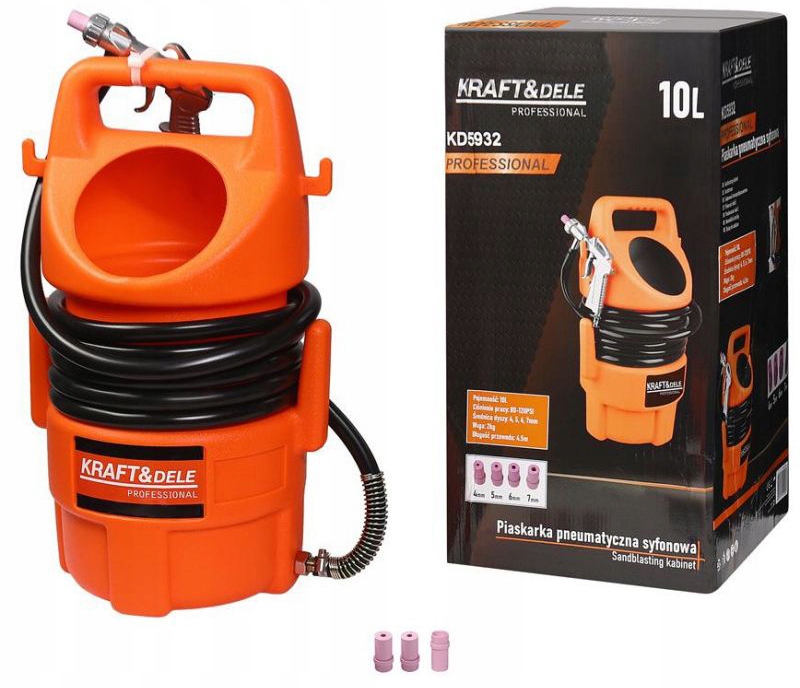 - ✅ Пневматический песчаный блюд KD5932 ✅ Танк 10L✅ 4 сопла (4 мм, 5 мм, 6 мм, 7 мм) ✅ Кабель 4,5 м ✅ Руководство пользователя в польском