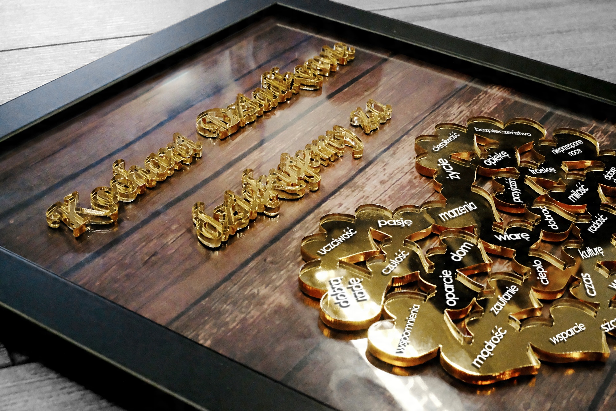 - 3D элементы выполнены из золотого акрила