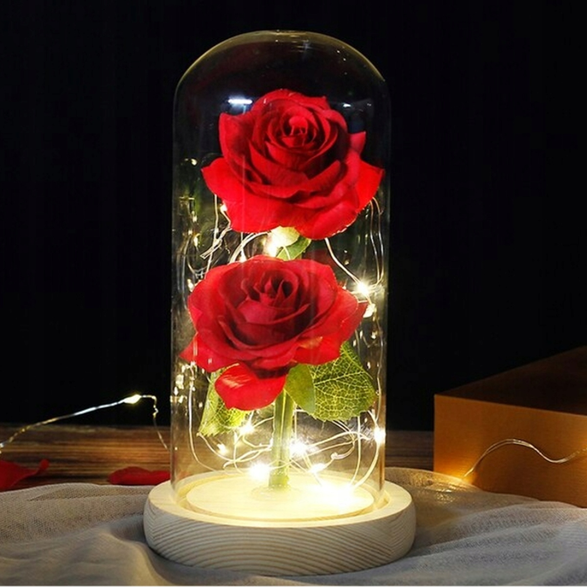 ВЕЧНАЯ РОЗА ПОДАРОК НА ДЕНЬ БАБУШКИ В СТЕКЛЯННОЙ СВЕТЯЩЕЙСЯ ПОДАРОЧНОЙ КОРОБКЕ
