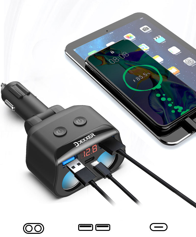 Дистрибьютор оснащен двумя зажигалками с сигаретами, которые могут поддерживать устройства с максимальной мощностью 120w b>. Благодаря этому вы можете одновременно подключить и поставлять различные устройства, такие как GPS Navigation, автомобильная камера, портативный DVD -плеер и многое другое. все это без страха перегрузить электрическую систему.
