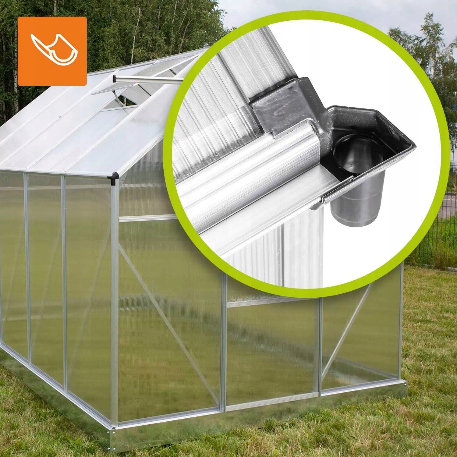 Дренажная система тепличной воды, которая позволяет собирать дождевую воду для орошения растений p>