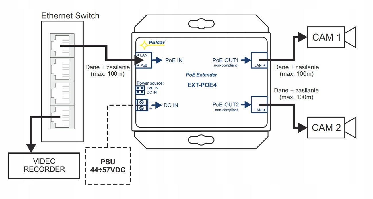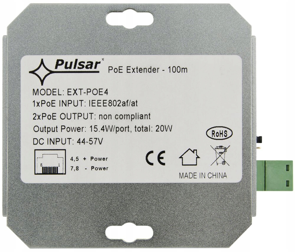 Удлинитель PoE Pulsar EXT-POE4 — 1 вход PoE, 2 выхода PoE