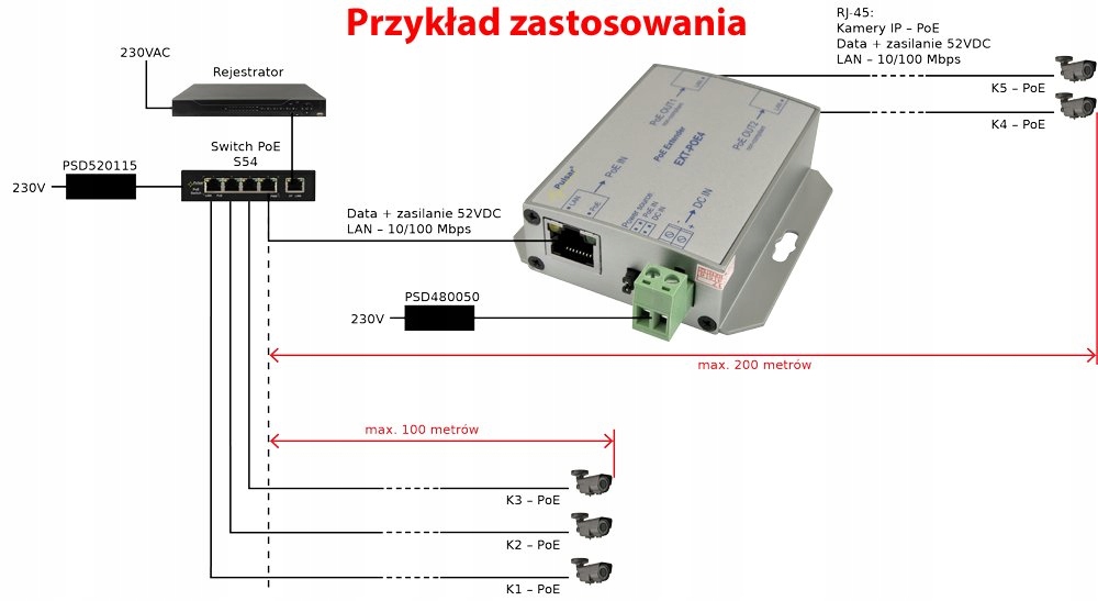 - Увеличивает дальность передачи данных Ethernet и питания PoE еще на 100 метров.