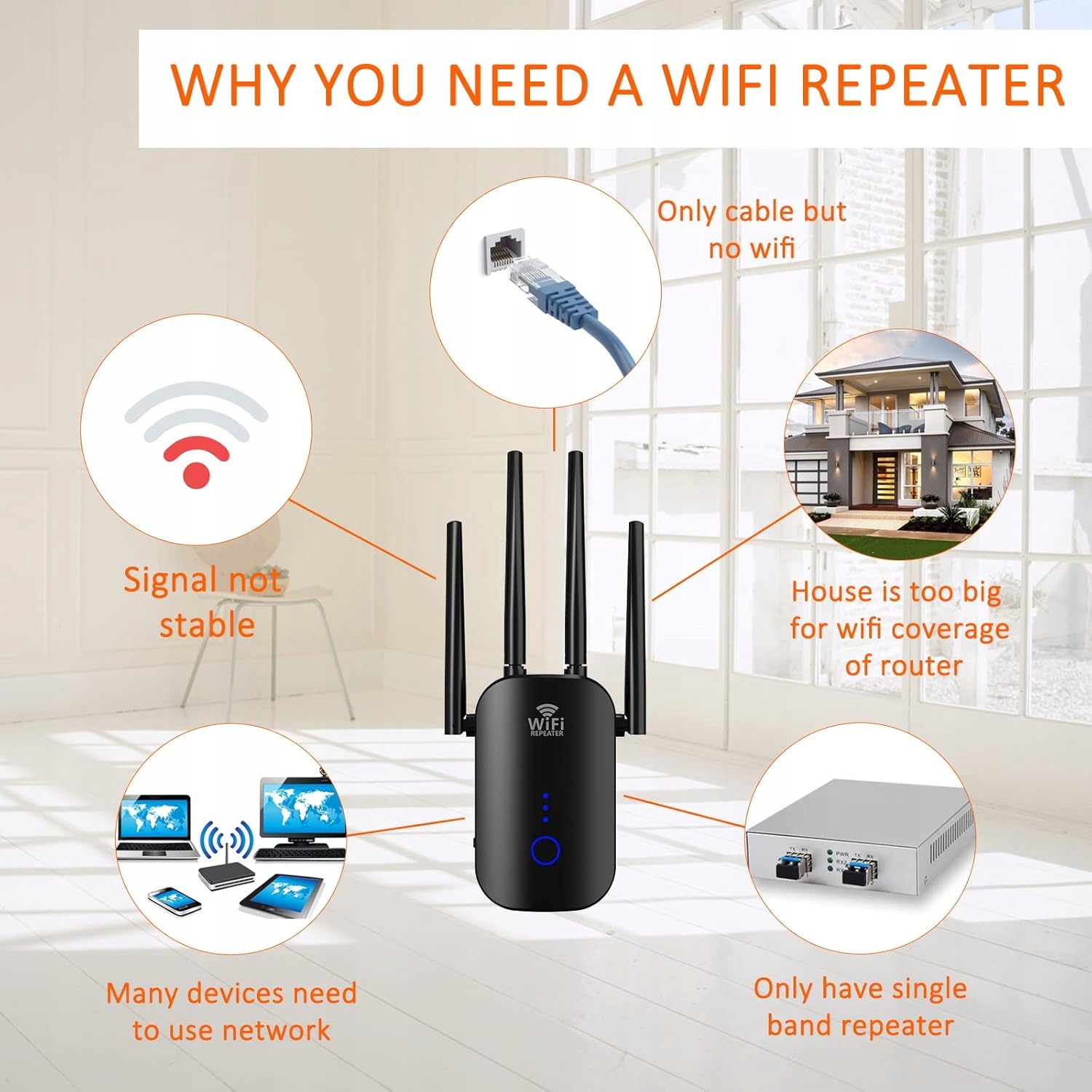 - ✅1200 Мбит/с двойной диапазон: высокоскоростный ретранслятор Home Home, двухполосный усилитель Wi-Fi Мощный, быстрый, антикорный, скорость до 1200 МБ/с, 5 ГГц до 867 Мбит/с, меньше нарушений подходит для быстрой передачи на короткие расстояния, используя HD-видео. 2,4 ГГц до 300 Мбит/с, сильное проникновение, подходящее для передачи на средних и больших расстояниях, базовое использование интернет -навигации.