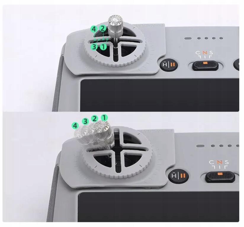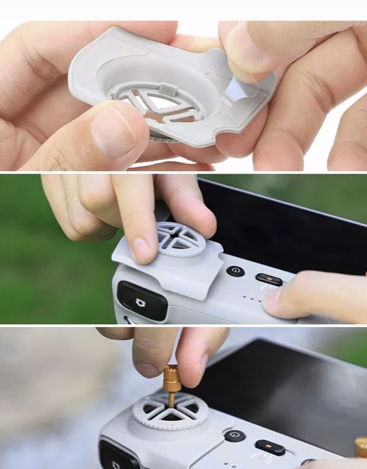 Установка регулятора предельно проста. Просто прикрепите его к контроллеру DJI, а затем прикрутите джойстики в нужное место. Если вы решите изменить их настройку или захотите снять регулятор, просто нагрейте монтажную ленту, например, феном, и регулятор отсоединится сам.