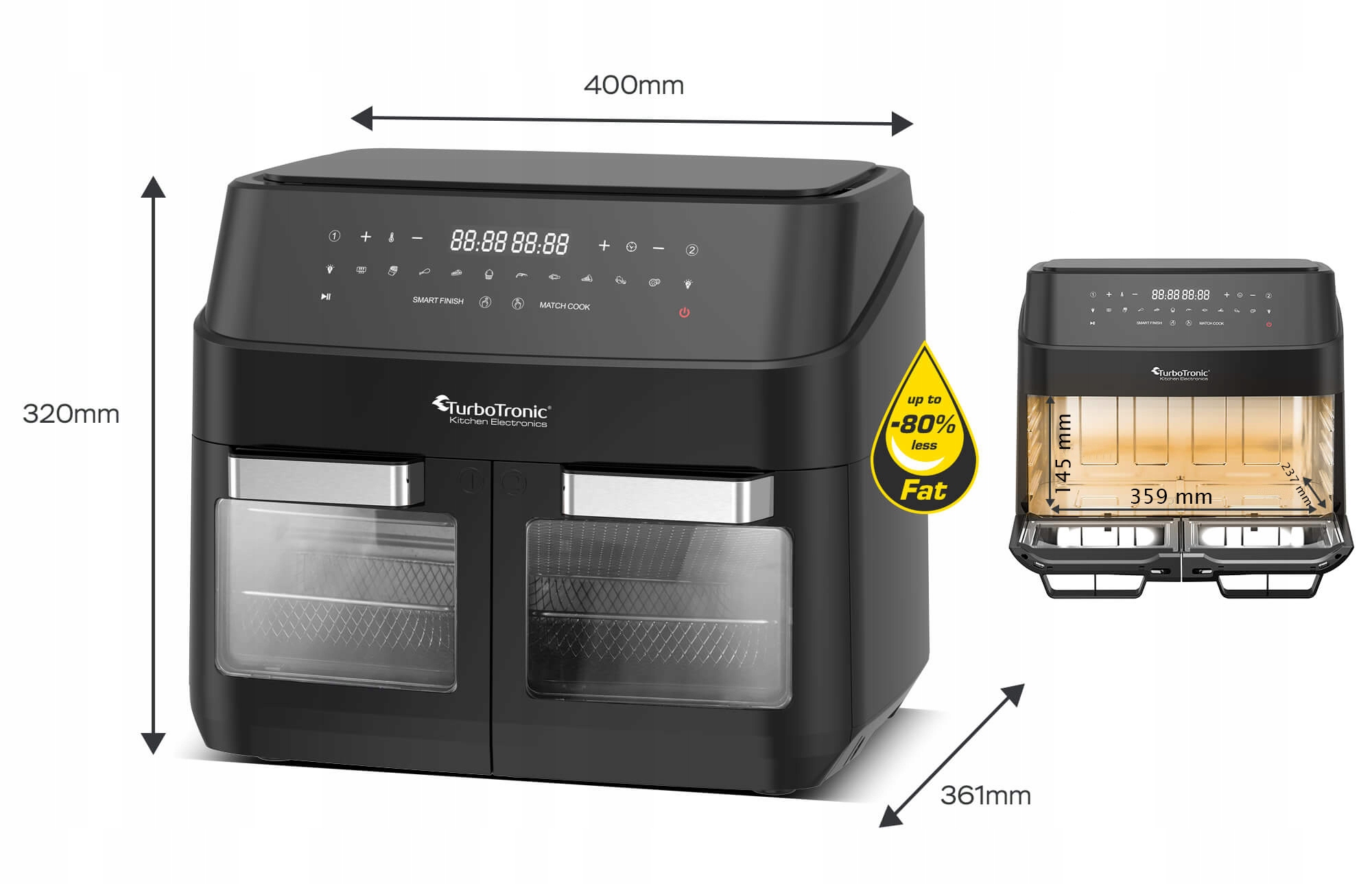 Одним из важнейших преимуществ этой мини-духовкифритюрницы является ее двухзонная камера. Вы можете использовать все пространство духовки для одновременного приготовления больших блюд или использовать перегородку для создания двух отдельных камер. . р>